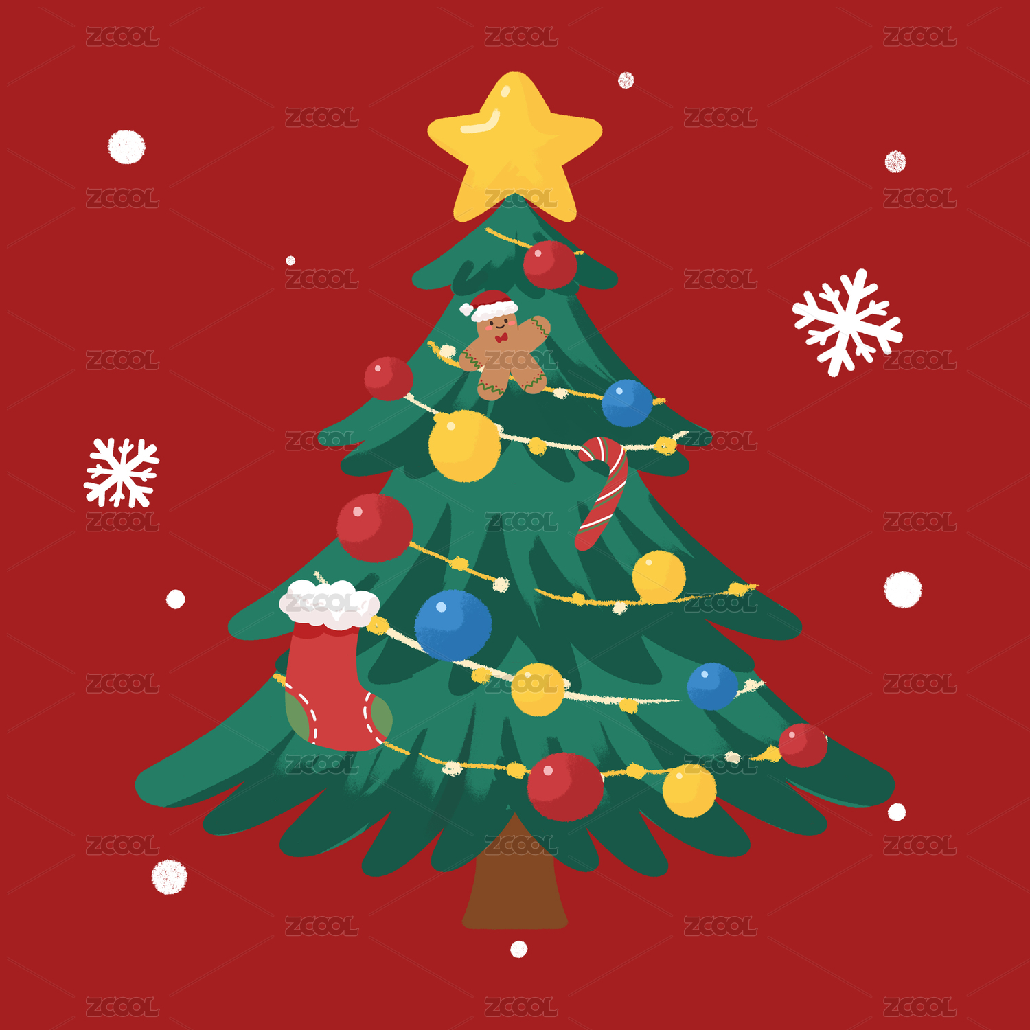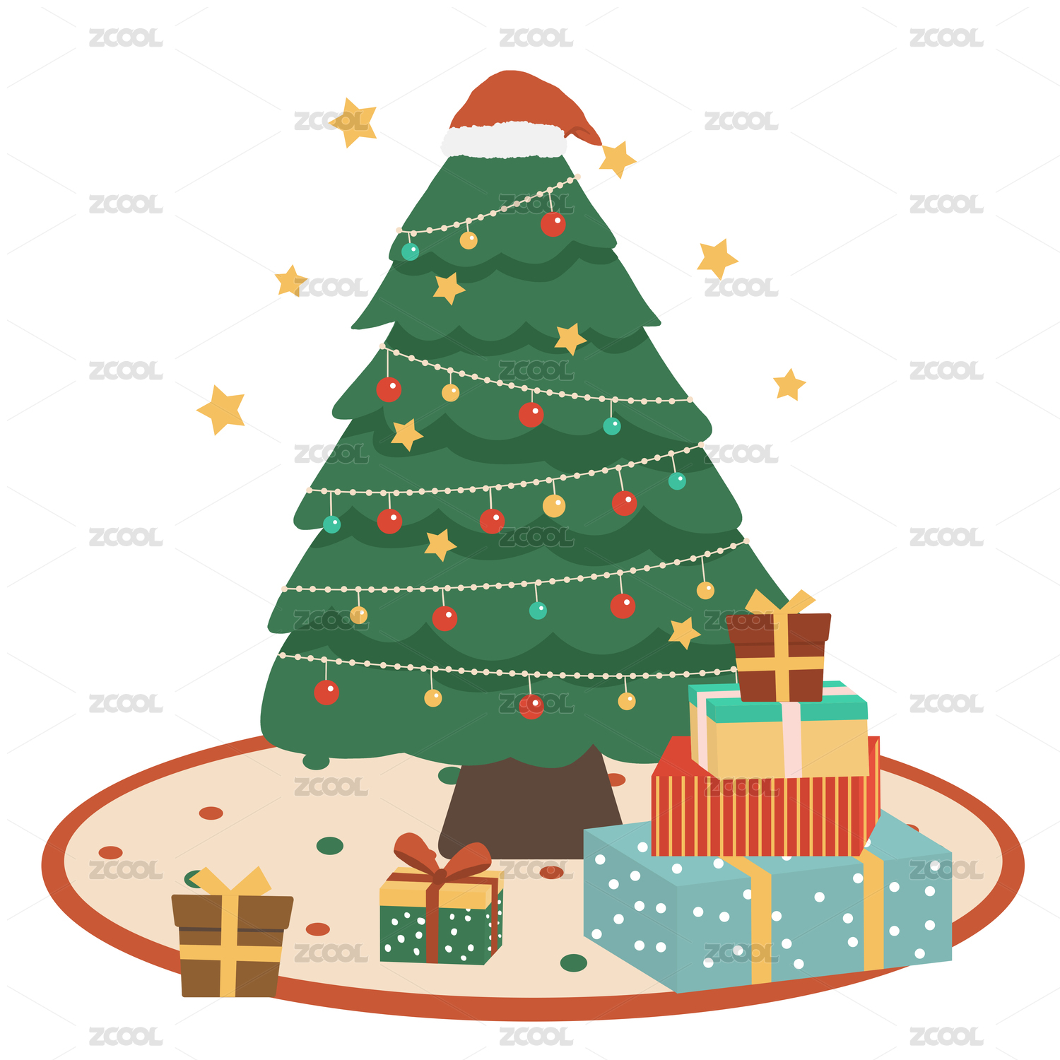 圣诞树,圣诞节,圣诞,装饰,圣诞球,圣诞老人,平安夜,圣诞灯,礼物盒,插画