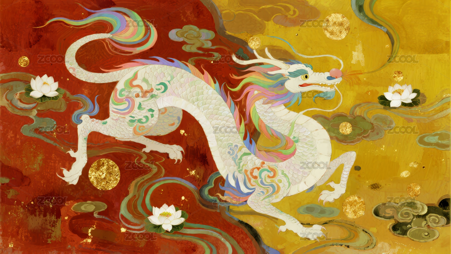 插画,水墨,国潮,国风,发财,插图,动漫,动物,春节,蓝色