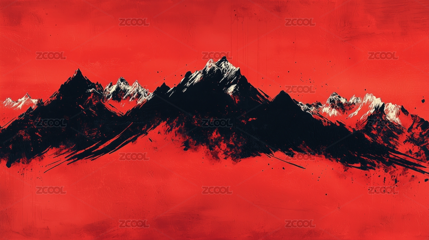 新中式水墨山峰风景,禅意装饰画壁纸艺术概
