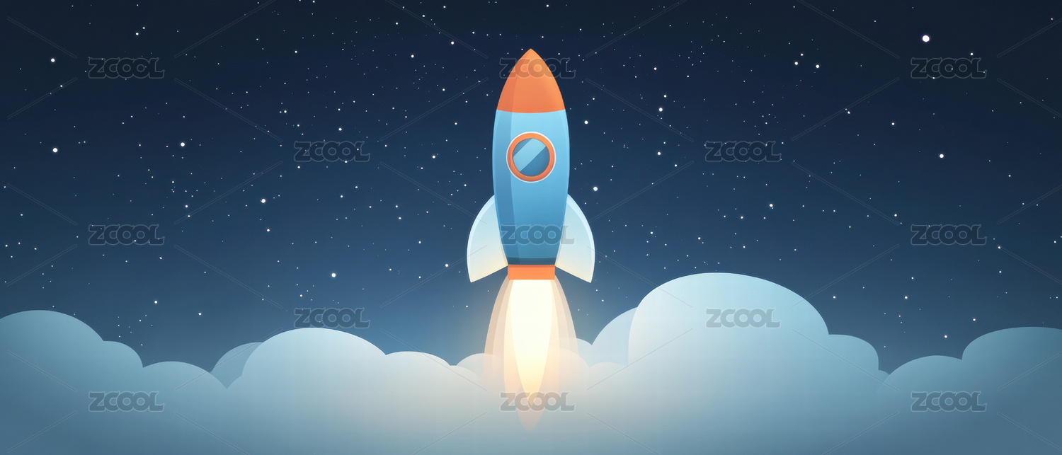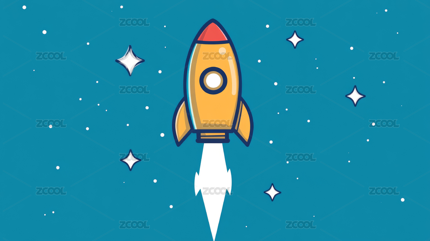 火箭,插画,矢量,蓝天,蓝色,白色,红色,浅蓝色,星星,圆