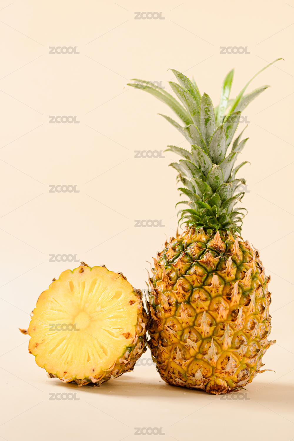 室内白色背景下的菠萝特写镜头