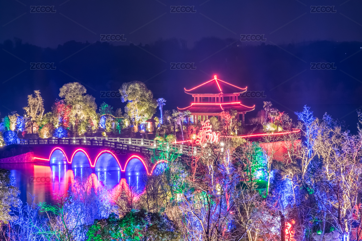 江苏省南京市银杏湖公园夜景灯光秀建筑景观