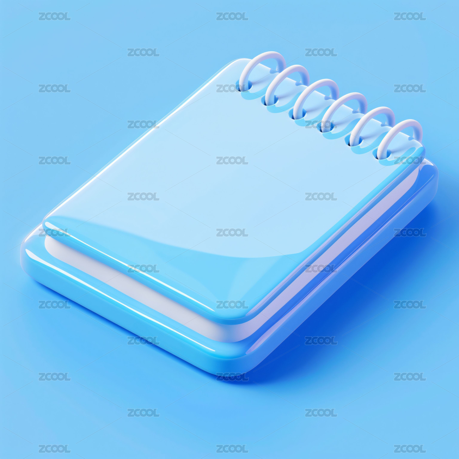 正上方蓝色背景下的螺旋笔记本和铅笔照片