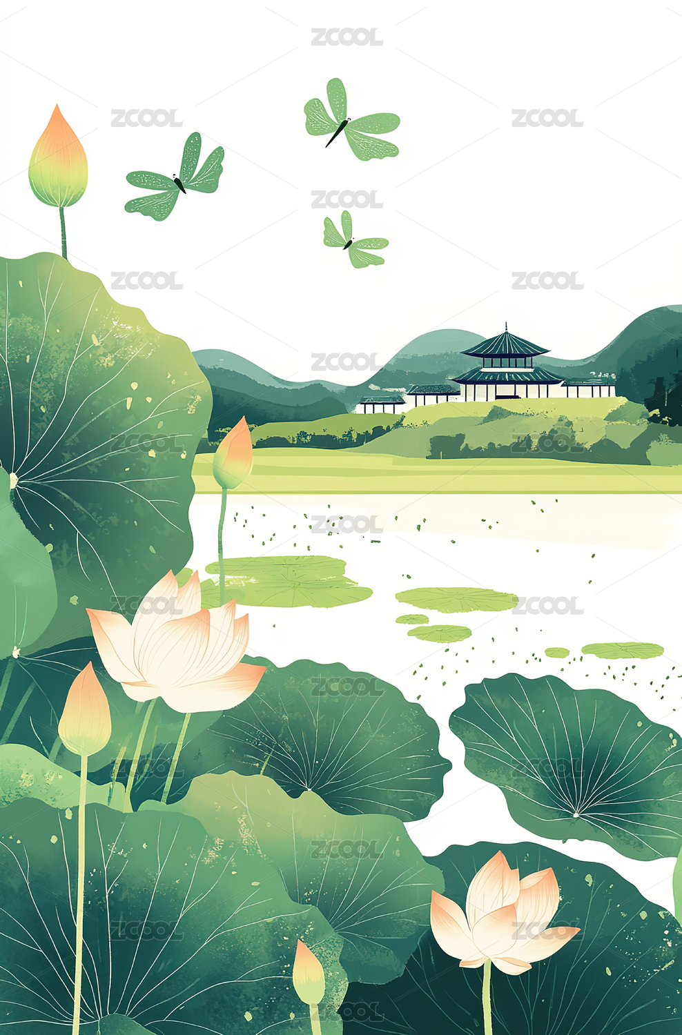 《荷韵清风》插画系列作品