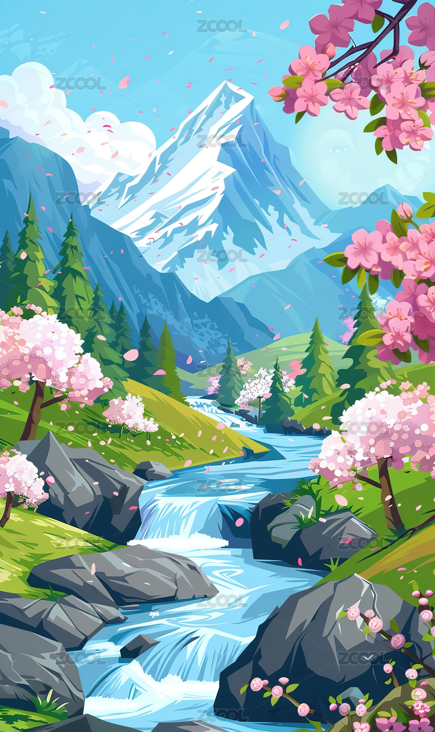 春日樱花风景插画