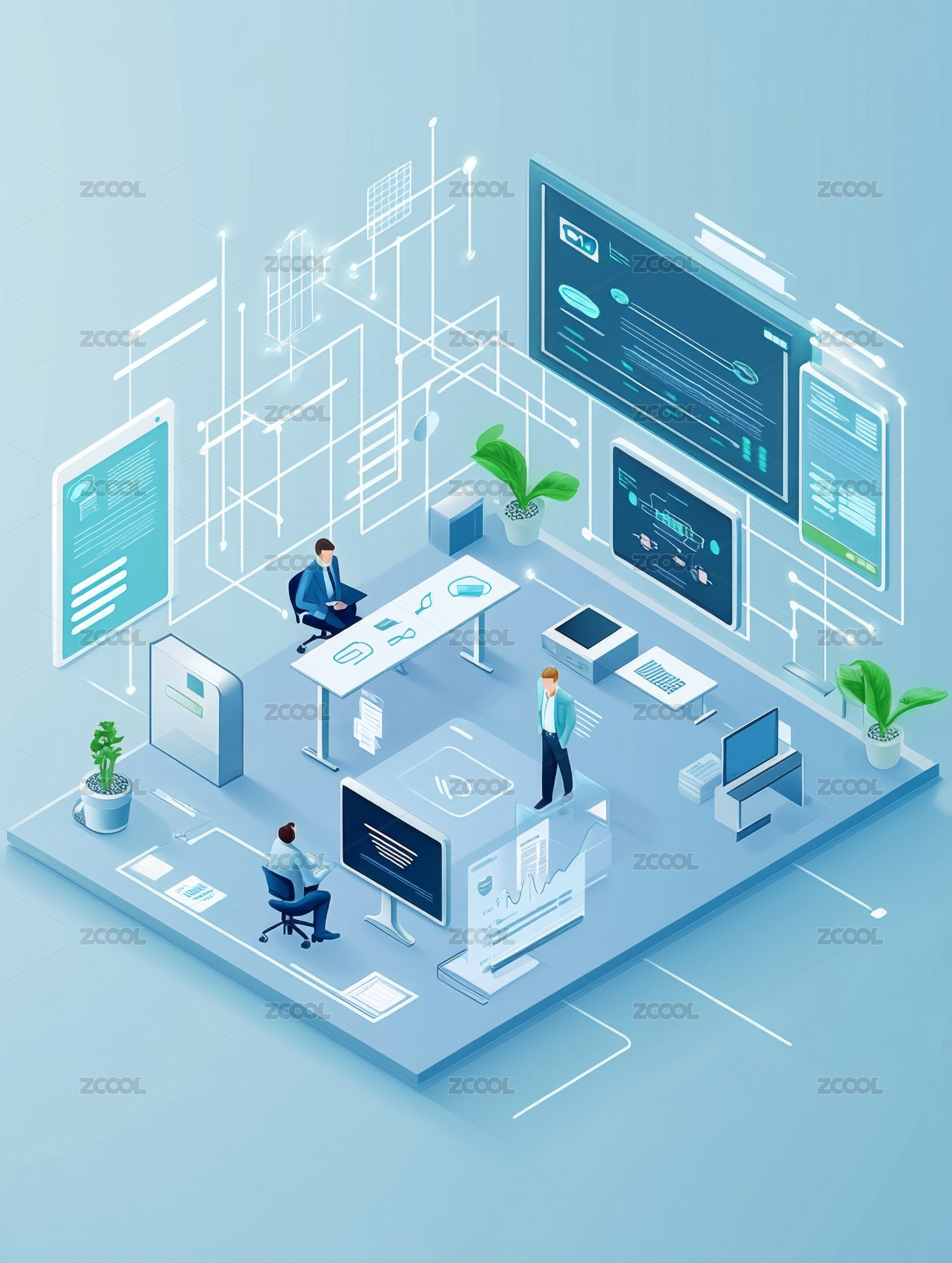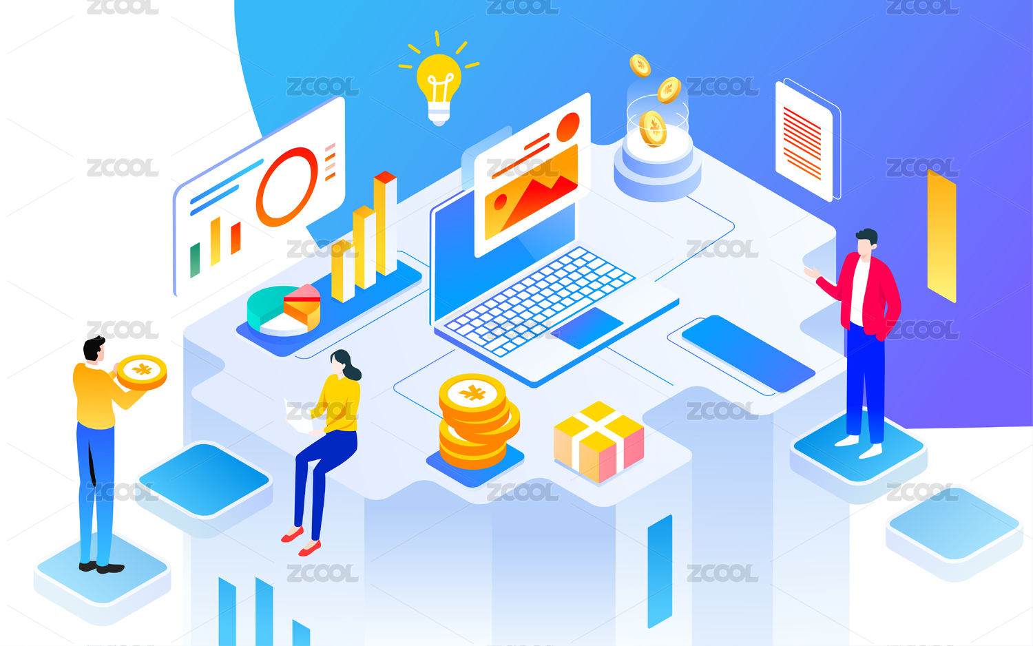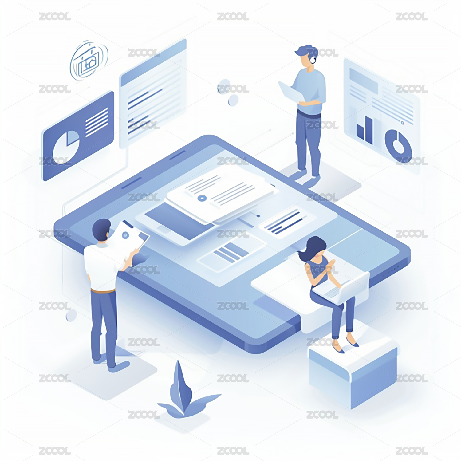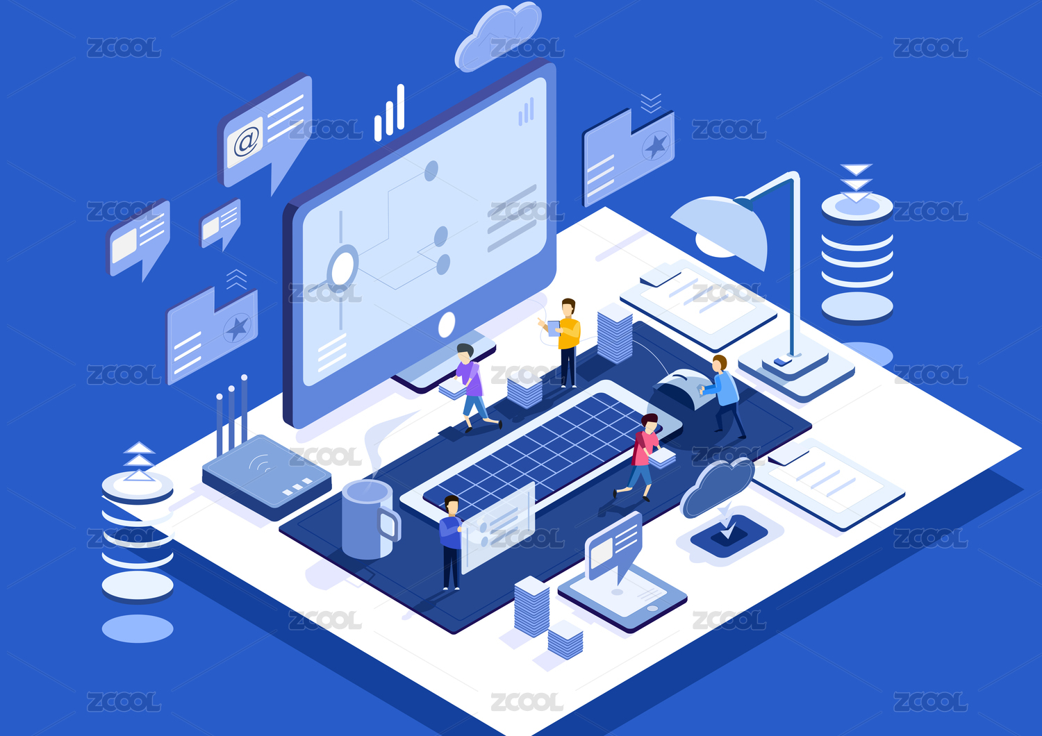 2.5D办公场景等距插画