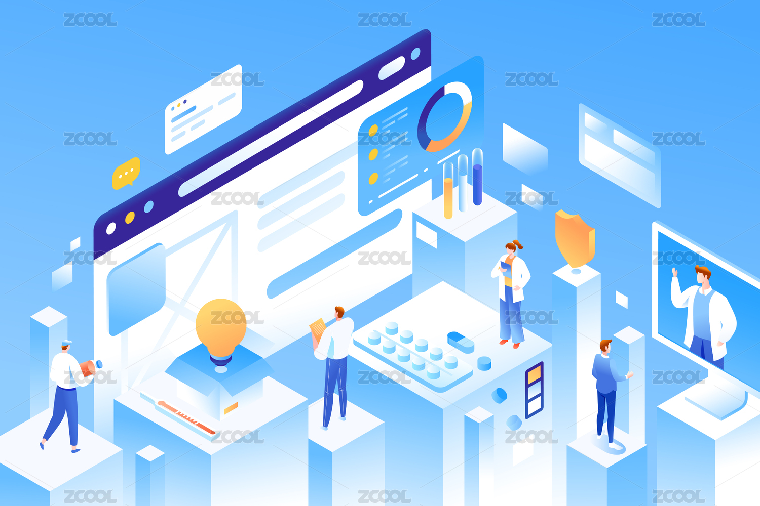 等距医疗健康矢量插画