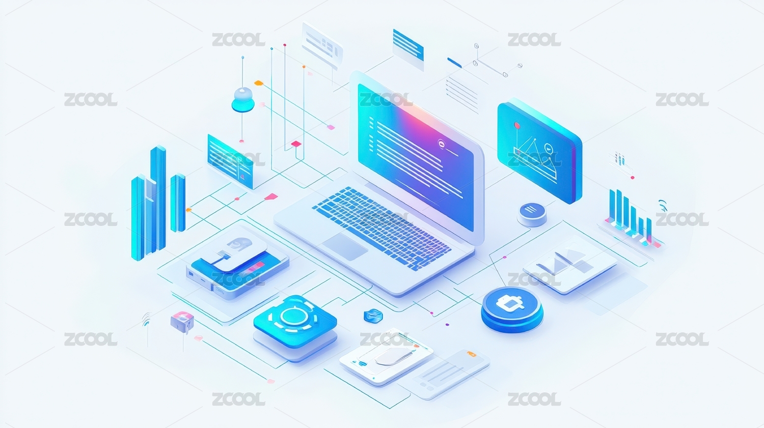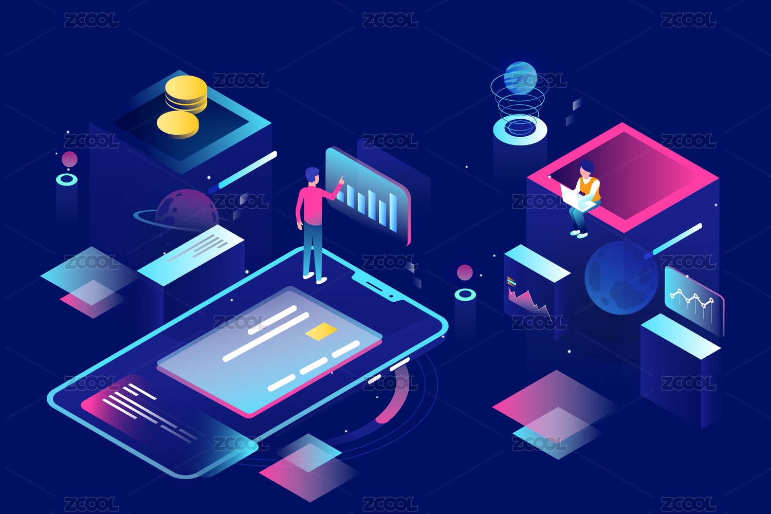 等距科技概念商务矢量插画