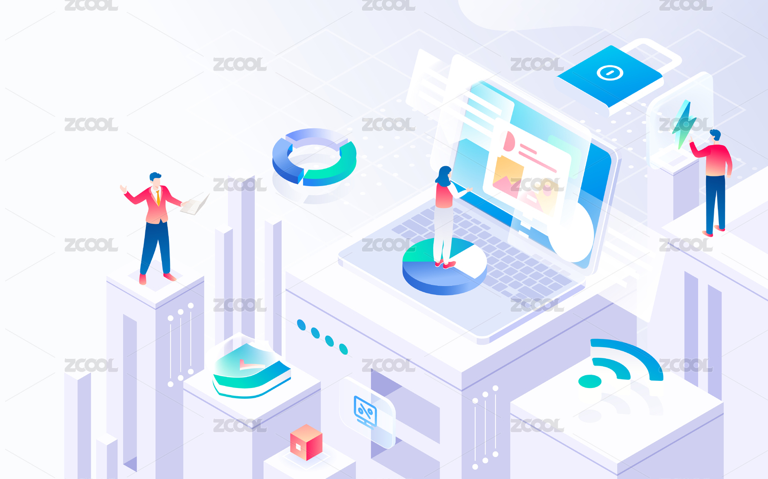 互联网微光渐变科技风格2.5D矢量插画