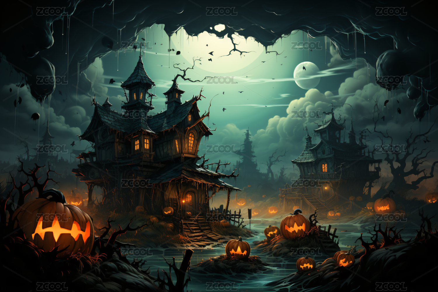 黑夜,月亮,月光,阴森,古堡,城堡,万圣节,夜晚,房子,诡异