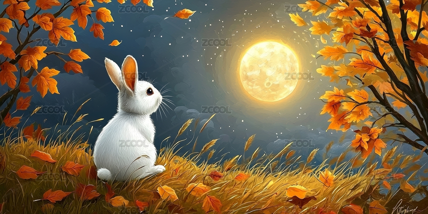 中秋节嫦娥玉兔月亮卡通漫画插画