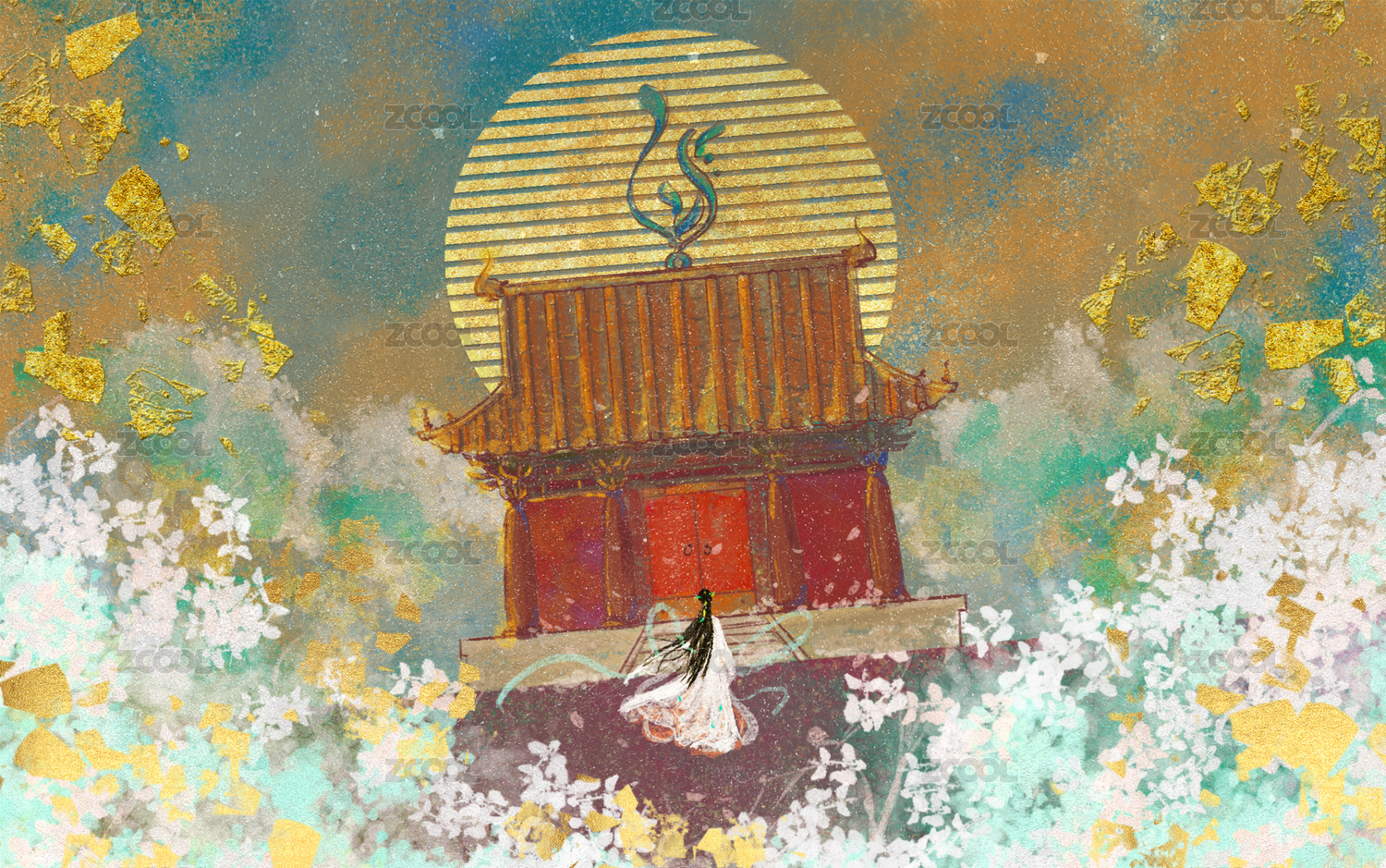 古风,武侠,传统,氛围感,岩彩,古代,意境,插画,神话,传说