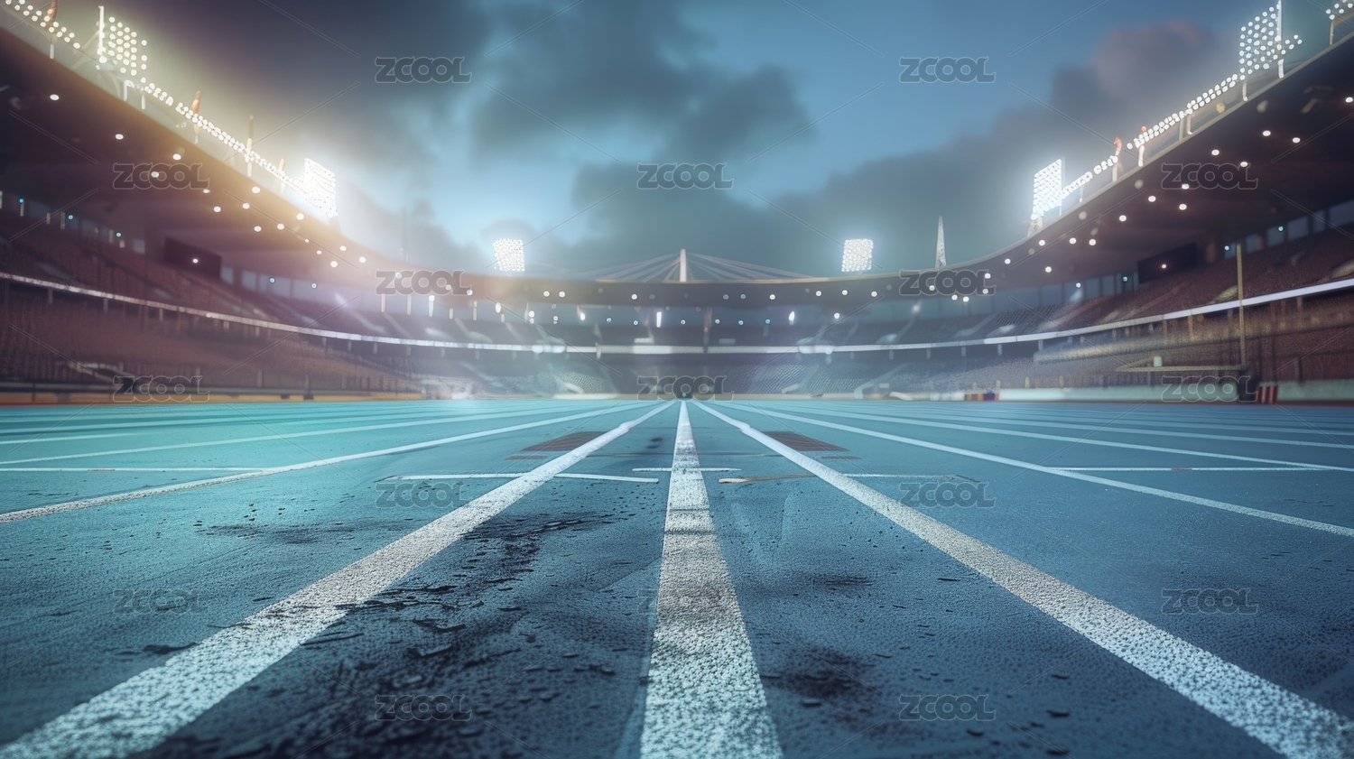 空旷的体育场跑道夜景