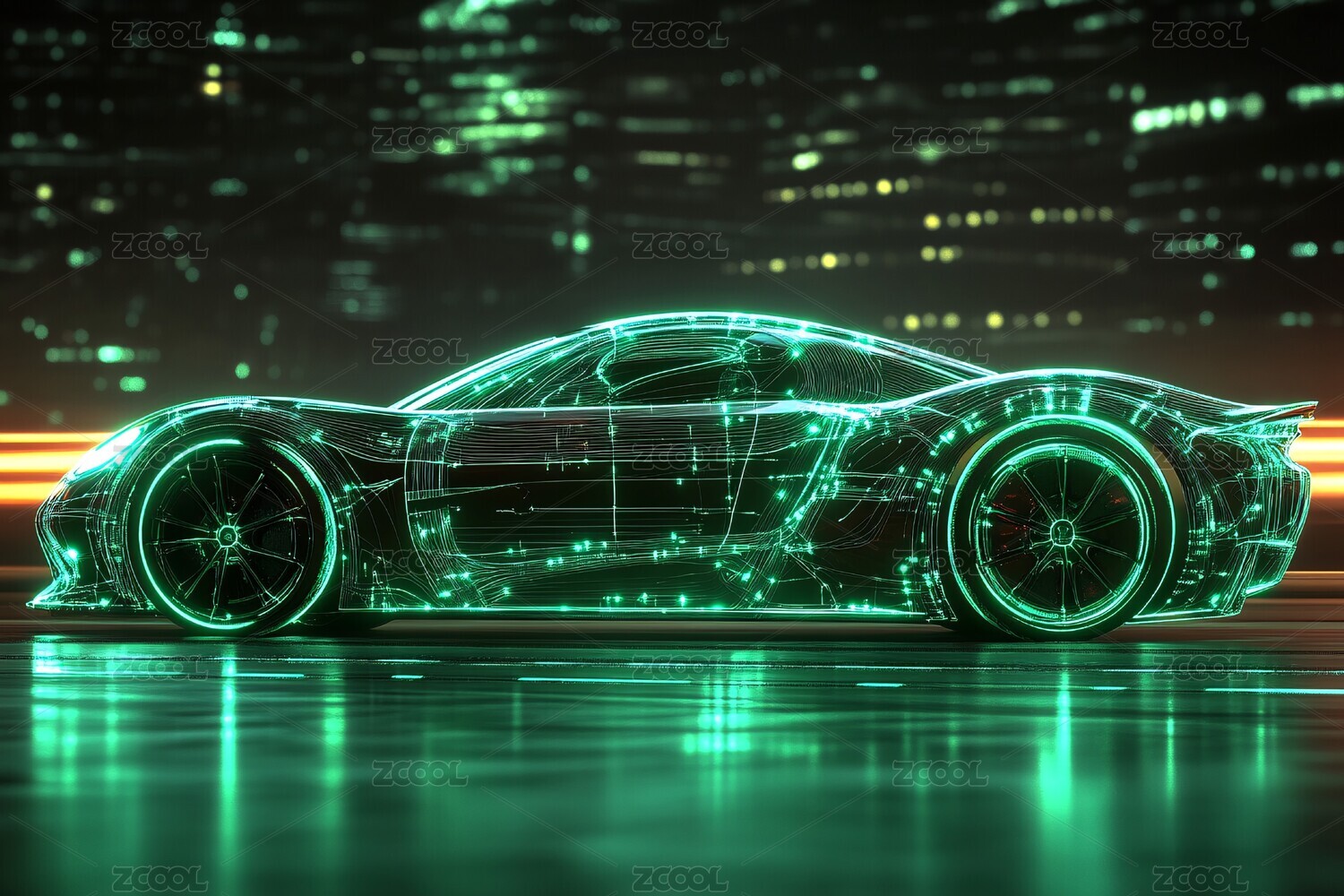 科技感绿色透明线条跑车