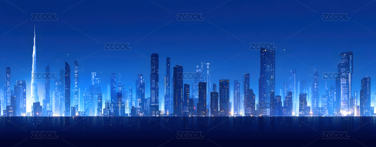 未来,都市,夜景,建筑,灯光,蓝色,光线,天际线,科技,梦幻