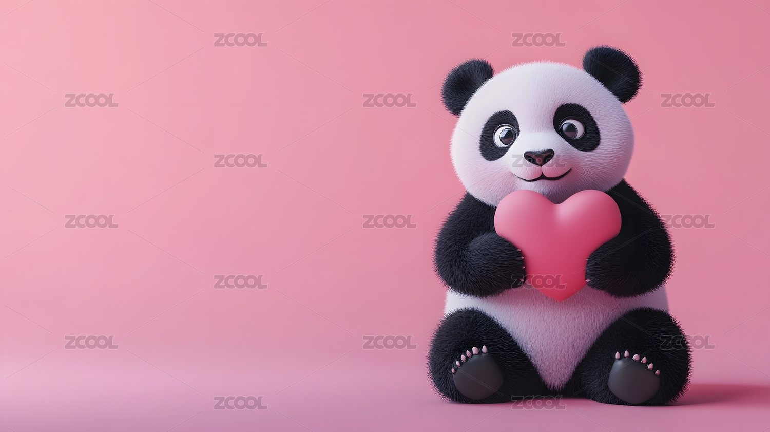 熊猫,爱心,可爱,卡通,动物,黑色,白色,眼睛,耳朵,手