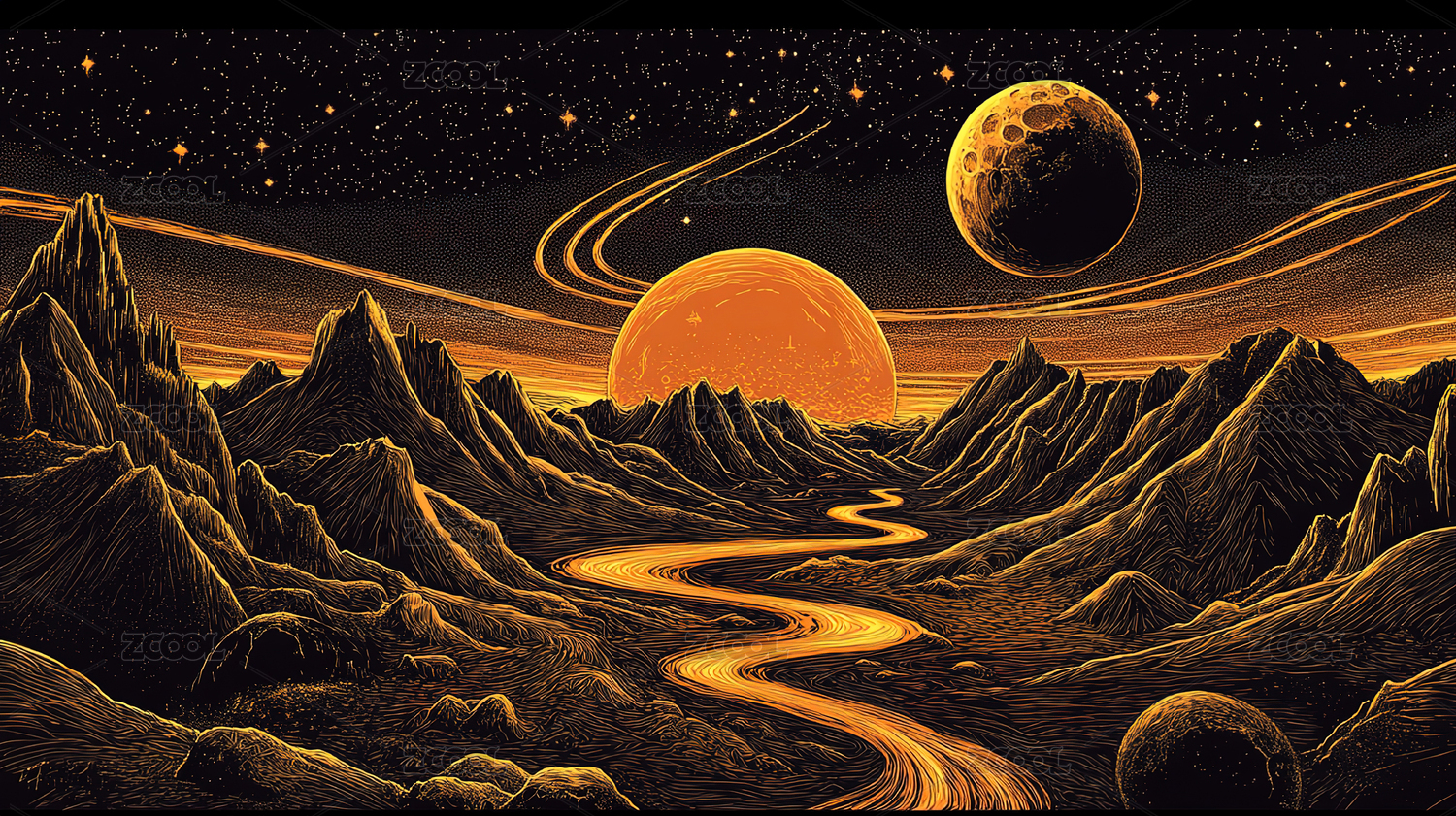自然,插画,天空,现代,多色的,壁纸,风景,夜晚