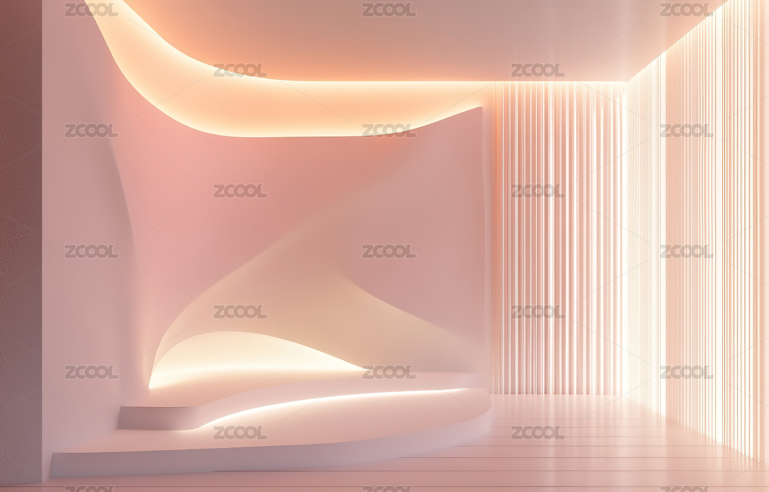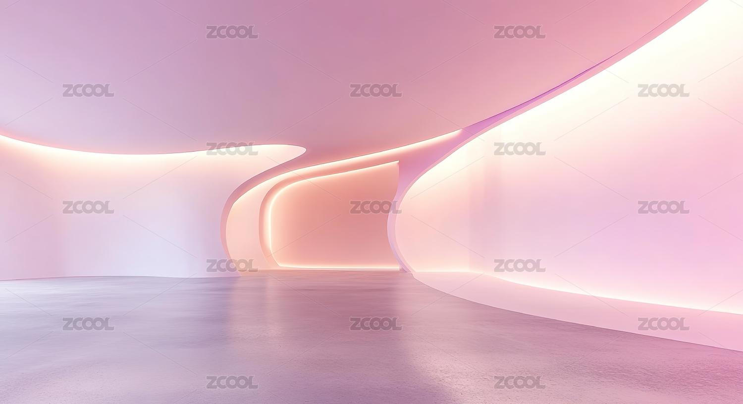 粉色现代几何建筑空间平台3D渲染抽象背景