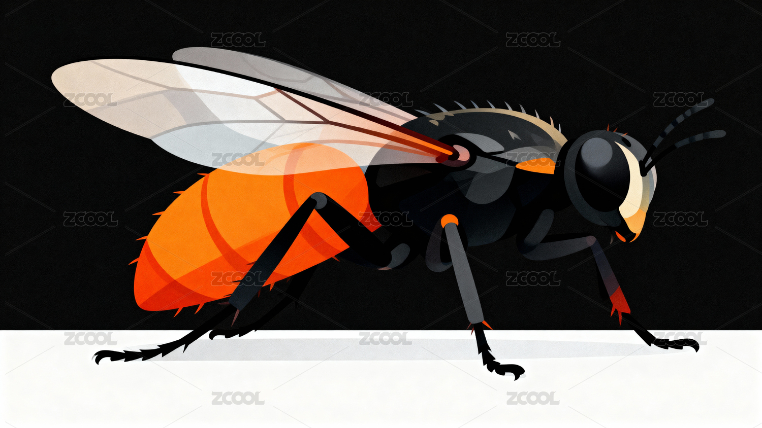 橙黑蜂类昆虫特写插画