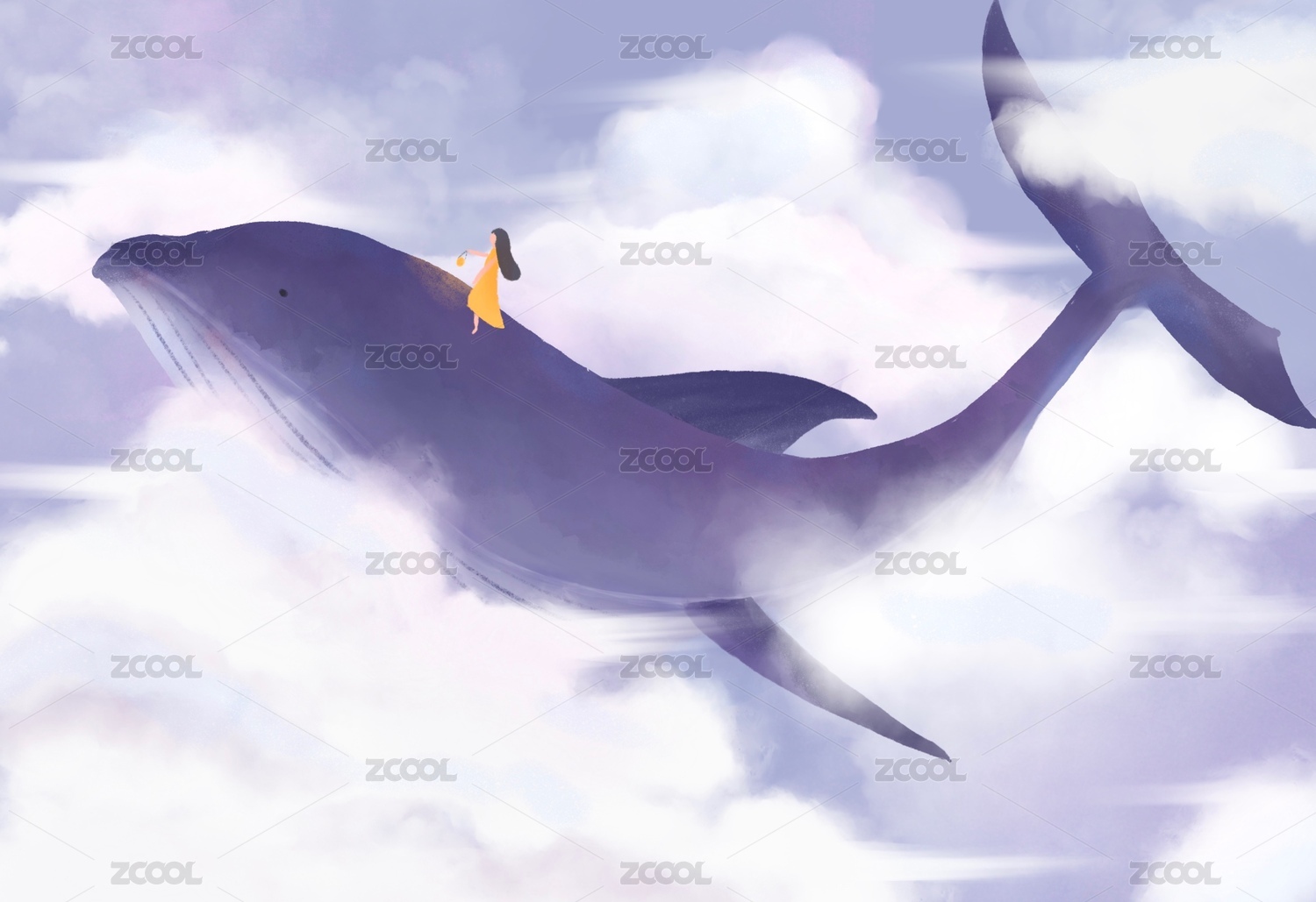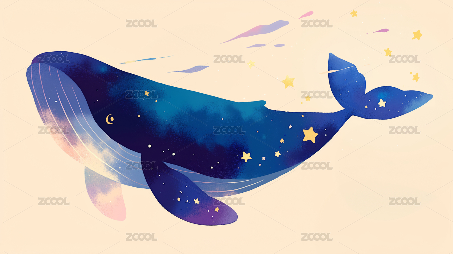 湛蓝的大海里潜出水面的大鲸鱼横图