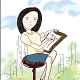 窗户,窗外,窗帘,背影,草地,房子,孤独,观望,花朵,草原