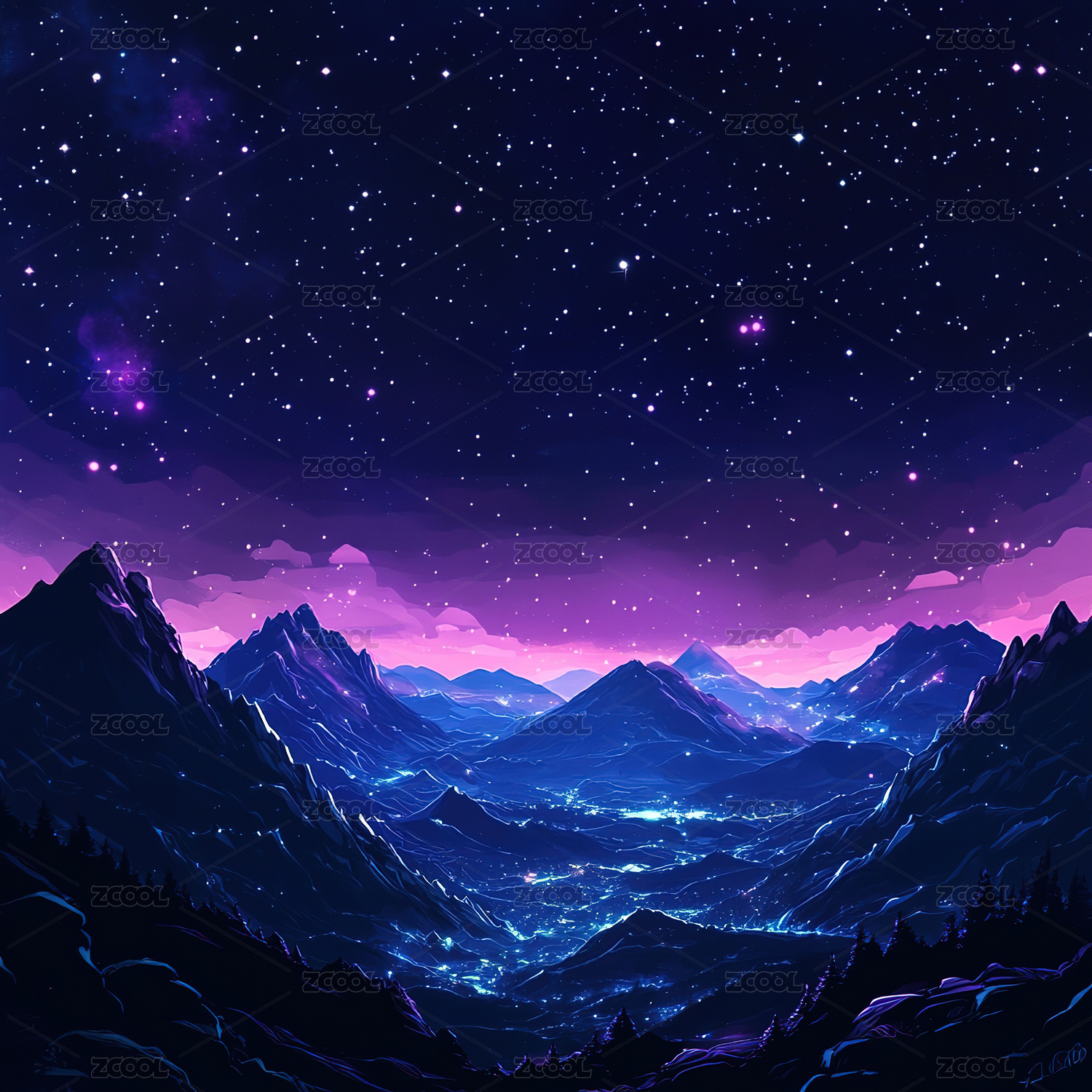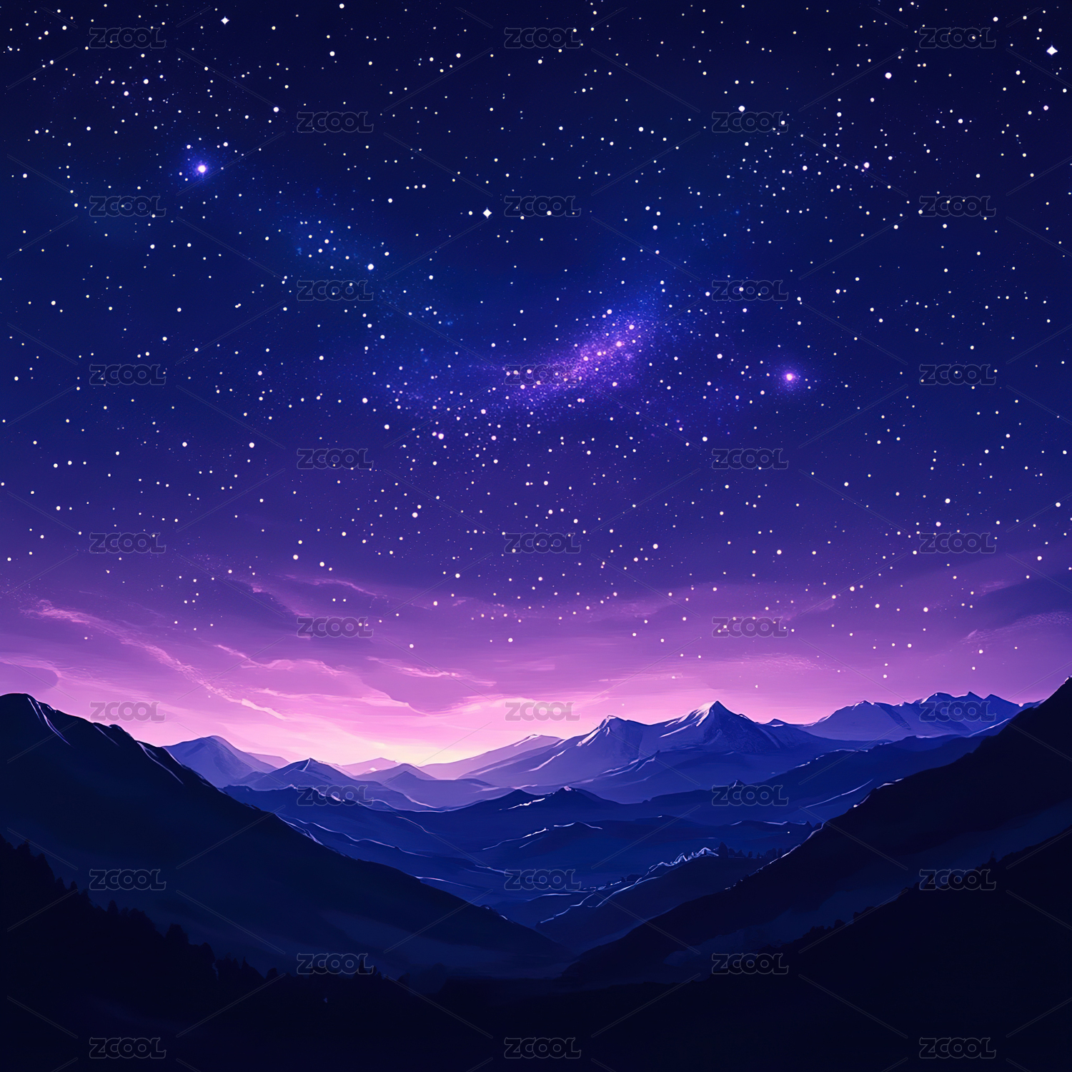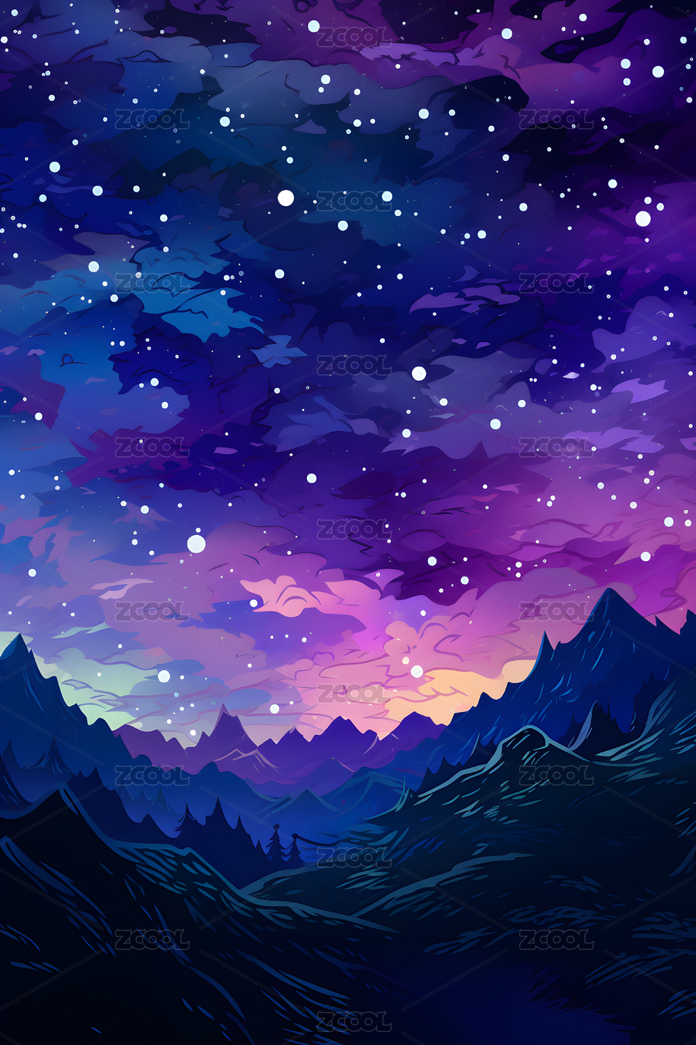 手绘唯美的抽象艺术感夜晚天空风景插画