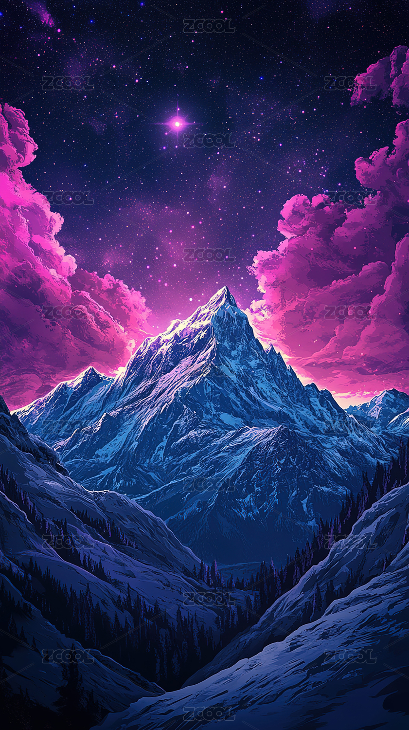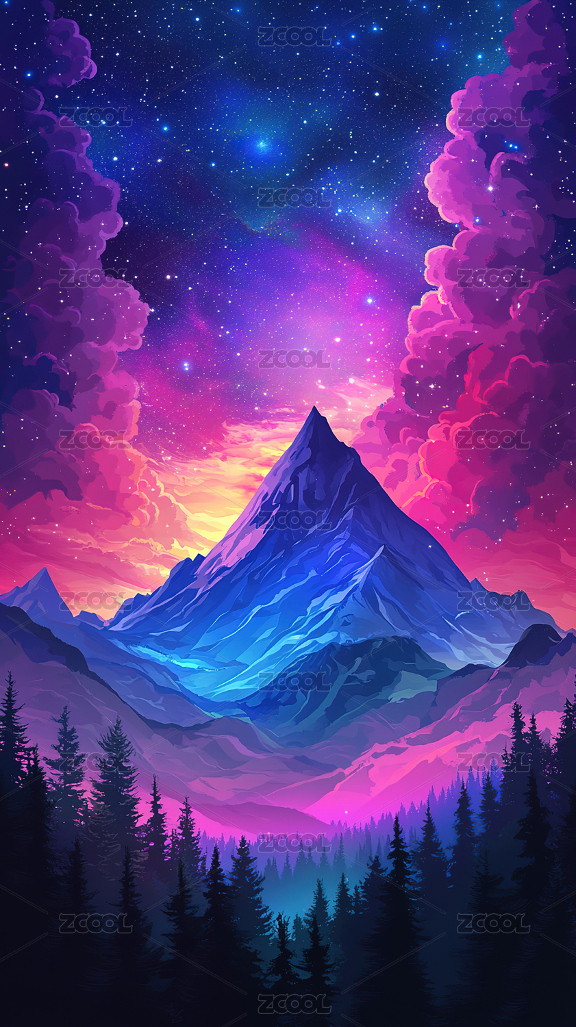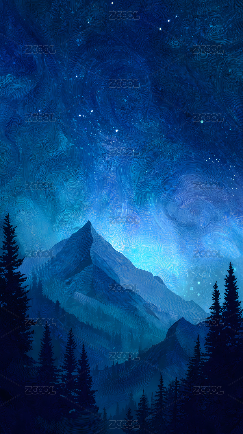 手绘唯美的抽象艺术感夜晚天空风景插画