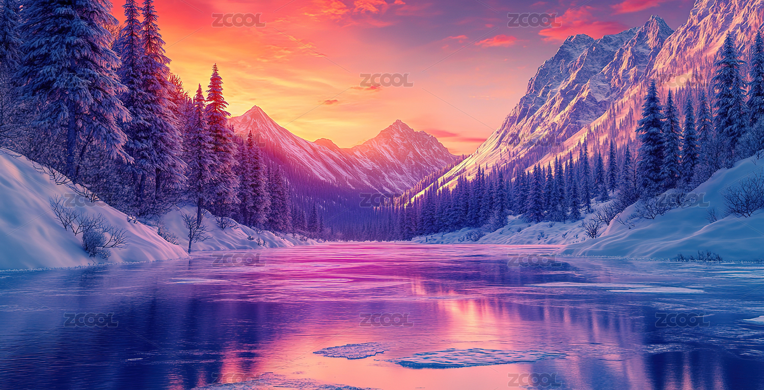 夕阳西下,,美丽的湖泊风光,晚霞染红