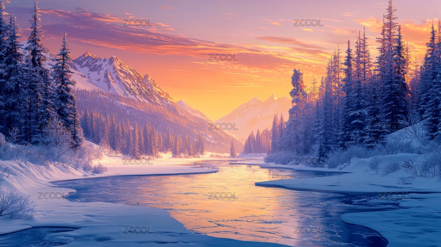 冬日白雪覆盖的林间乡村原野风景壁纸