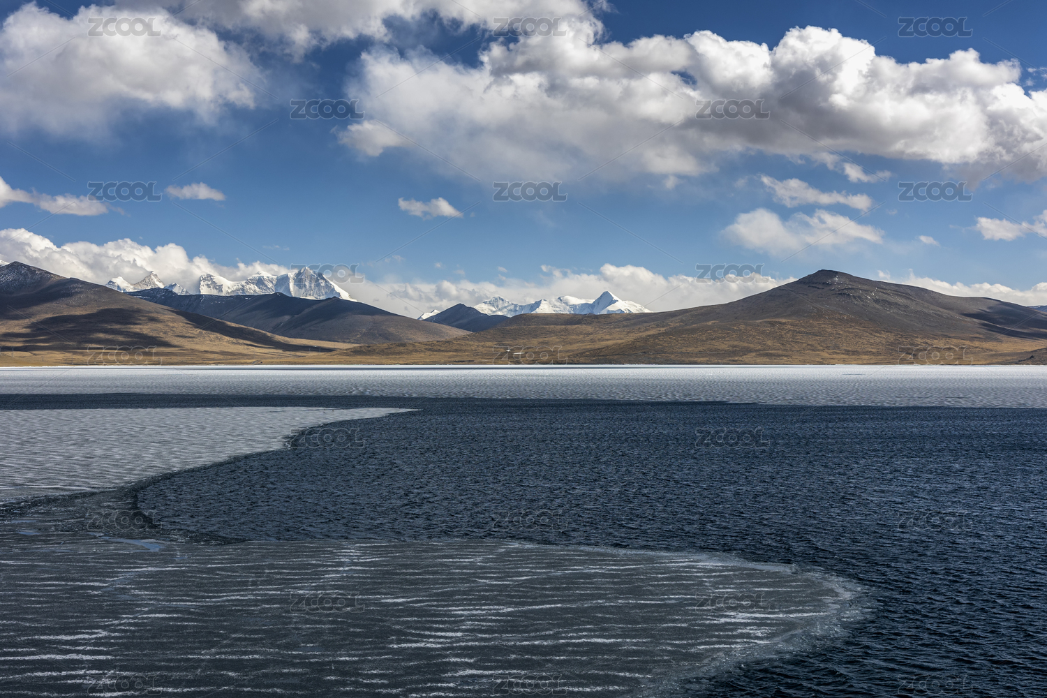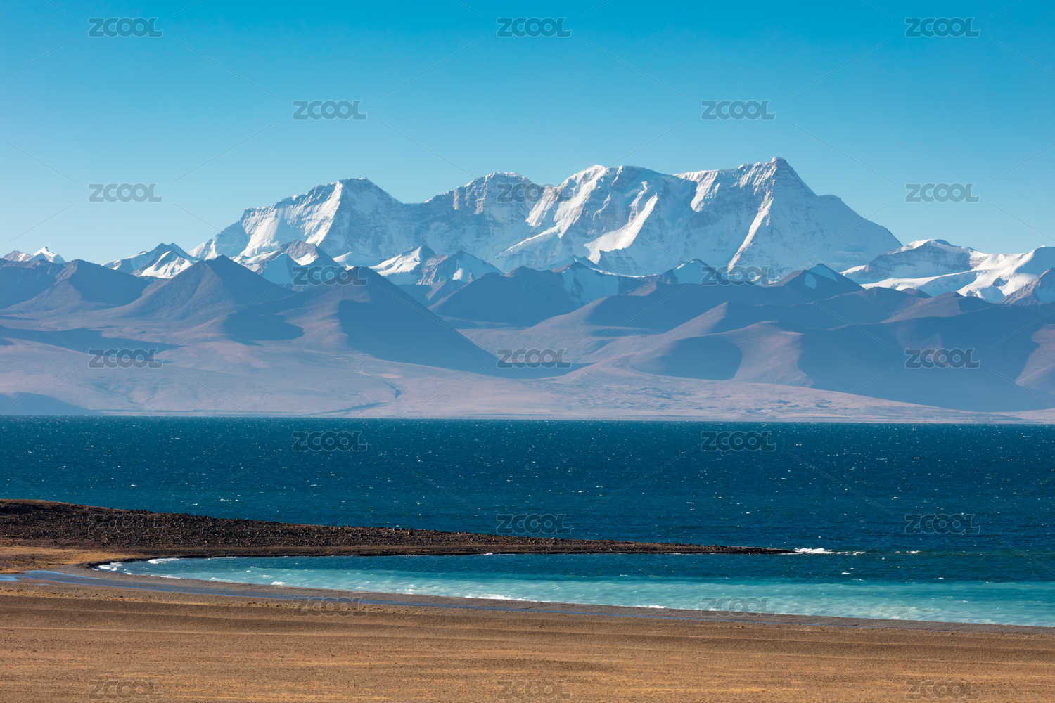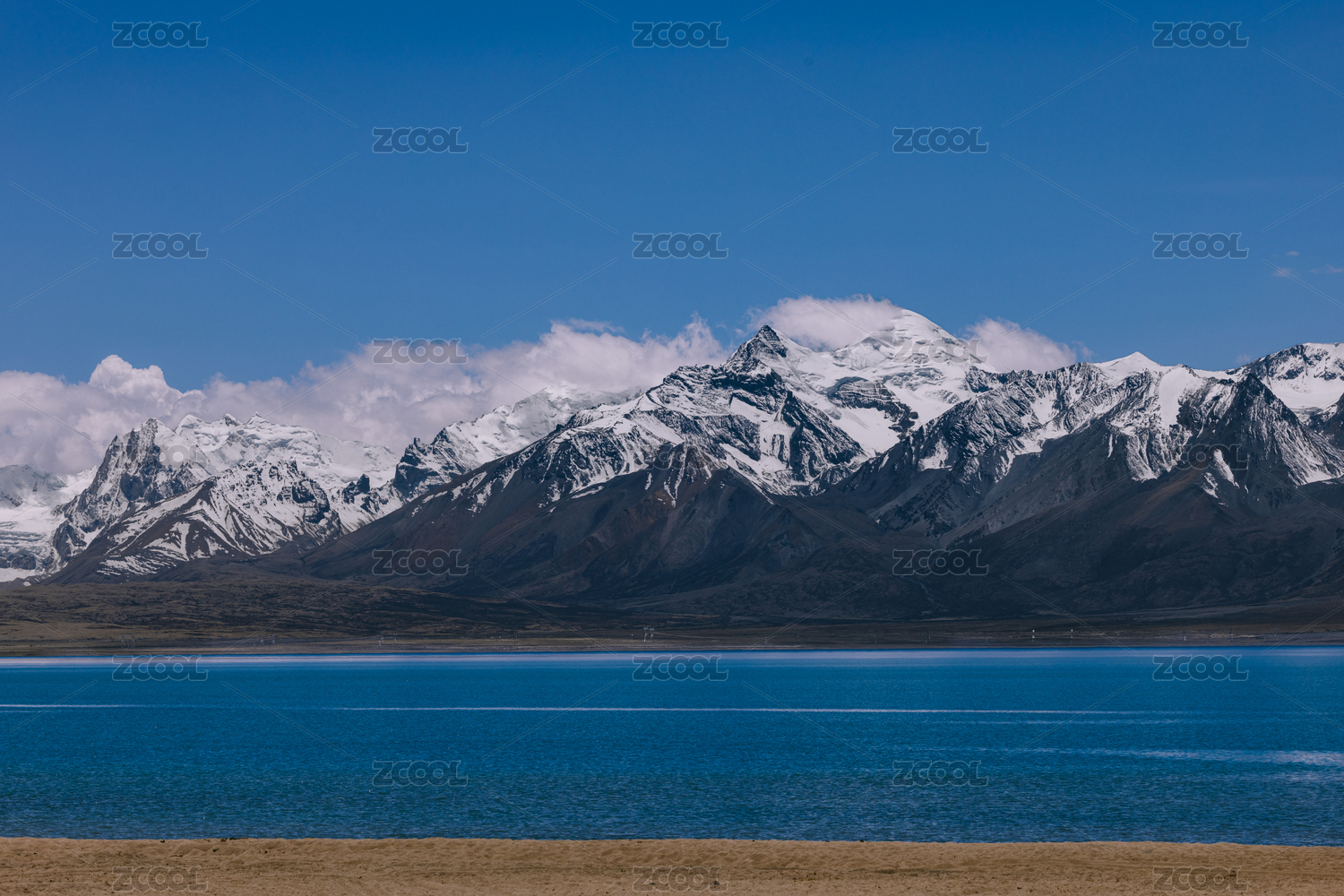 中国西藏山南地区普莫雍措湖库拉岗日雪山