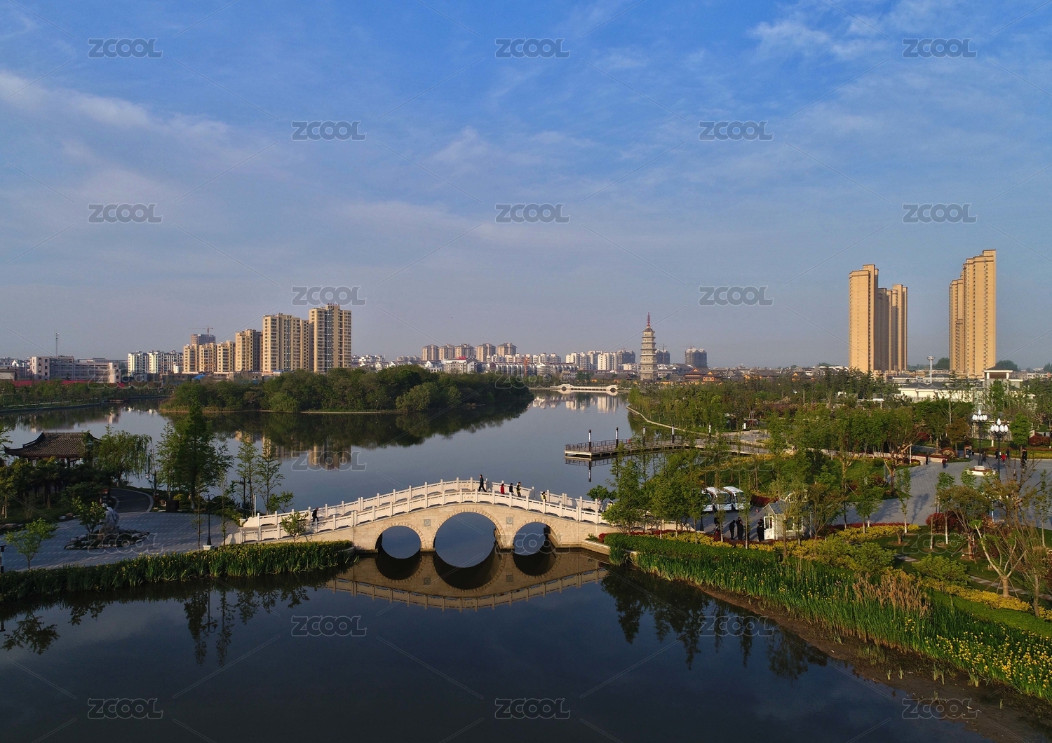 中国浙江省绍兴市大滩公园九虹桥城市环境