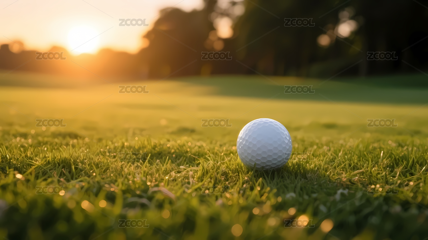 夕阳草地前景高尔夫球