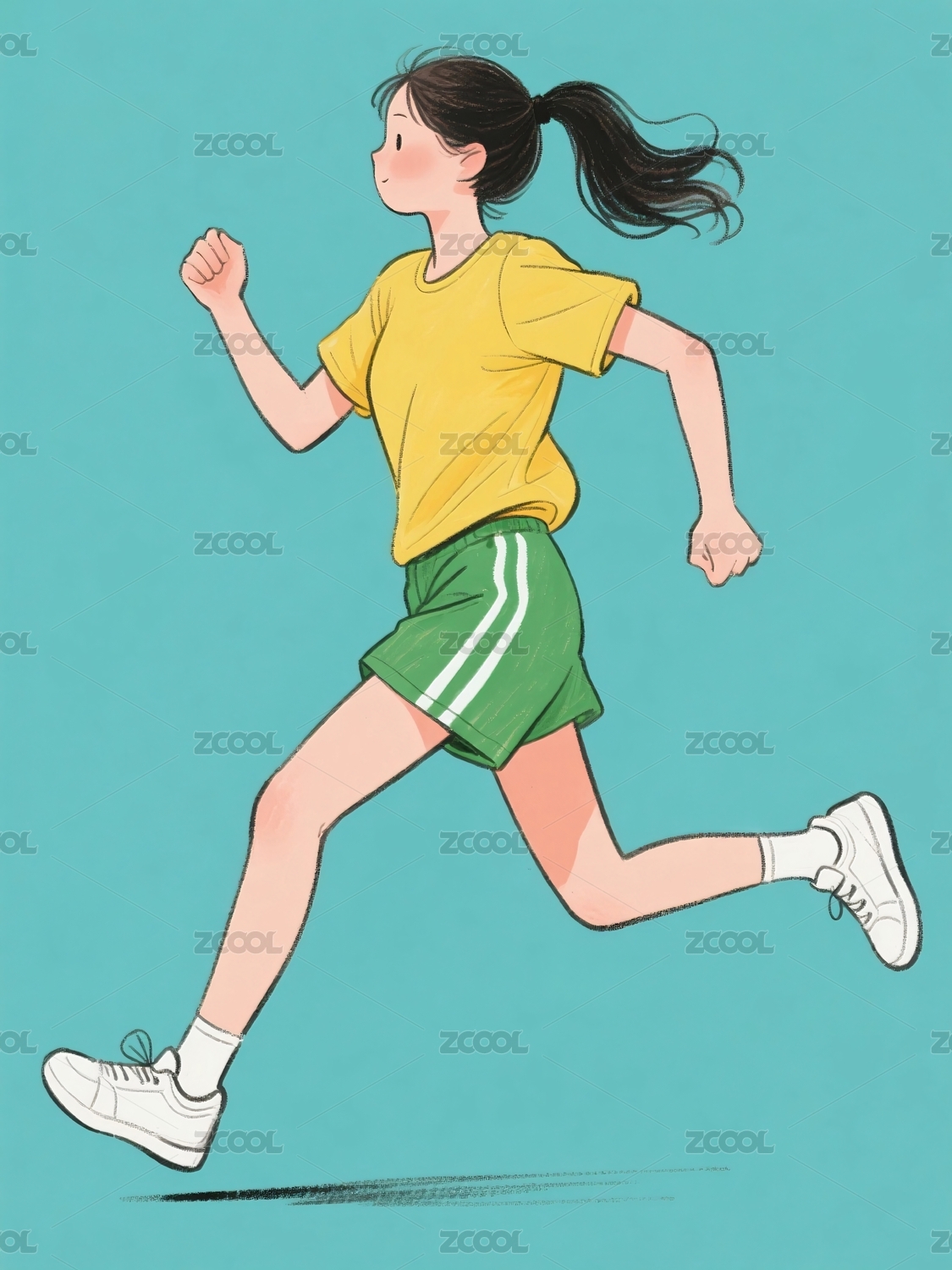AIGC202401,女生,奔跑,跑步,白色,全身像,全景,远景,插画,女性
