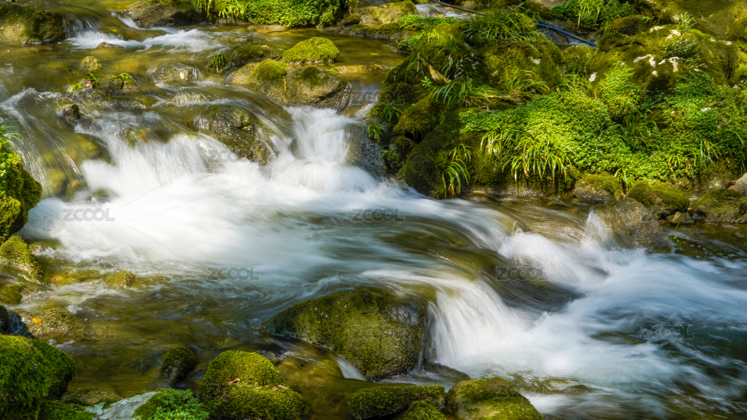 树叶,树林,水,水流,溪流,石头,秋天,秋季,苔藓,长曝光
