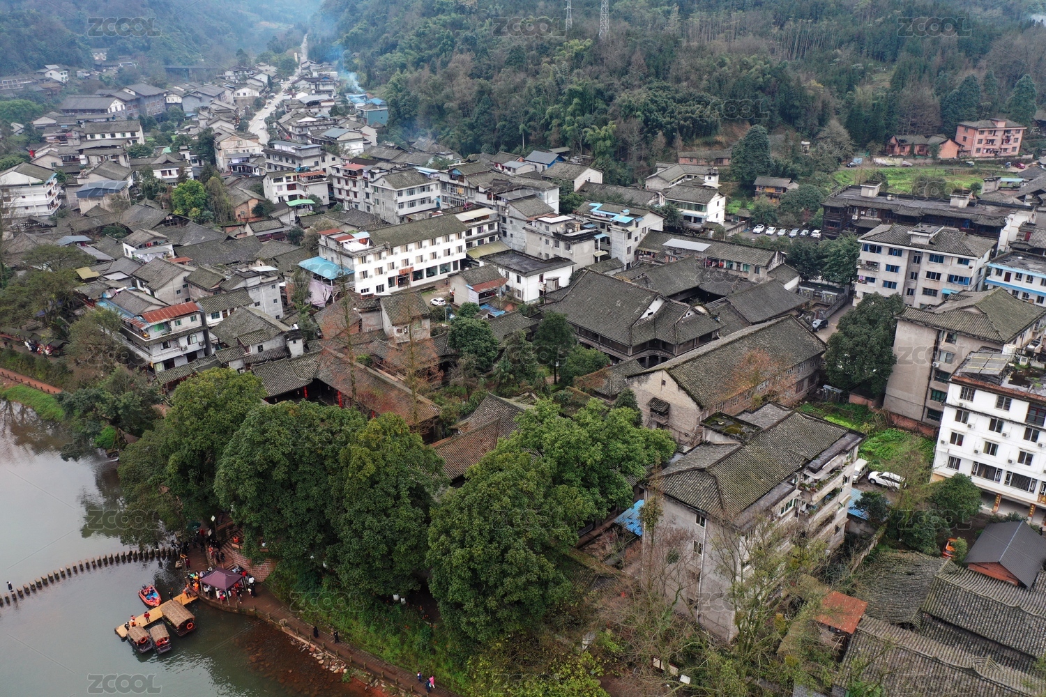 俯拍,民居,建筑,龙华古镇,河流,环境,四川,宜宾,屏山,旅游