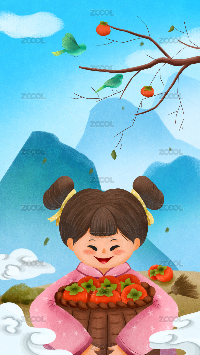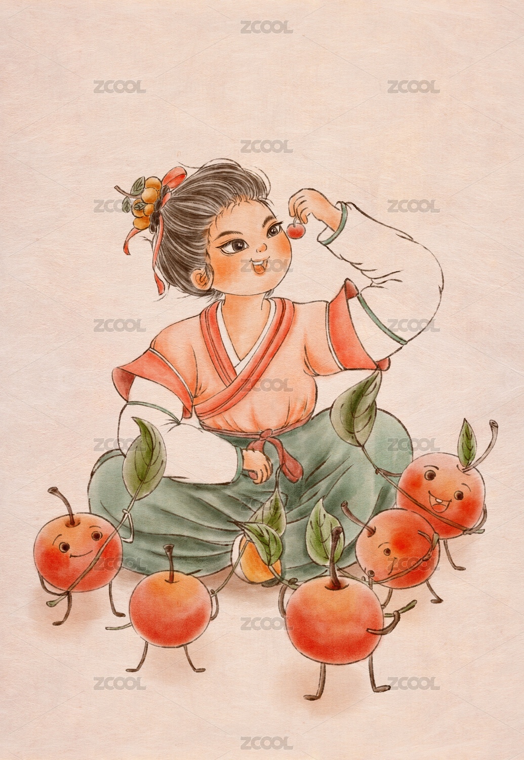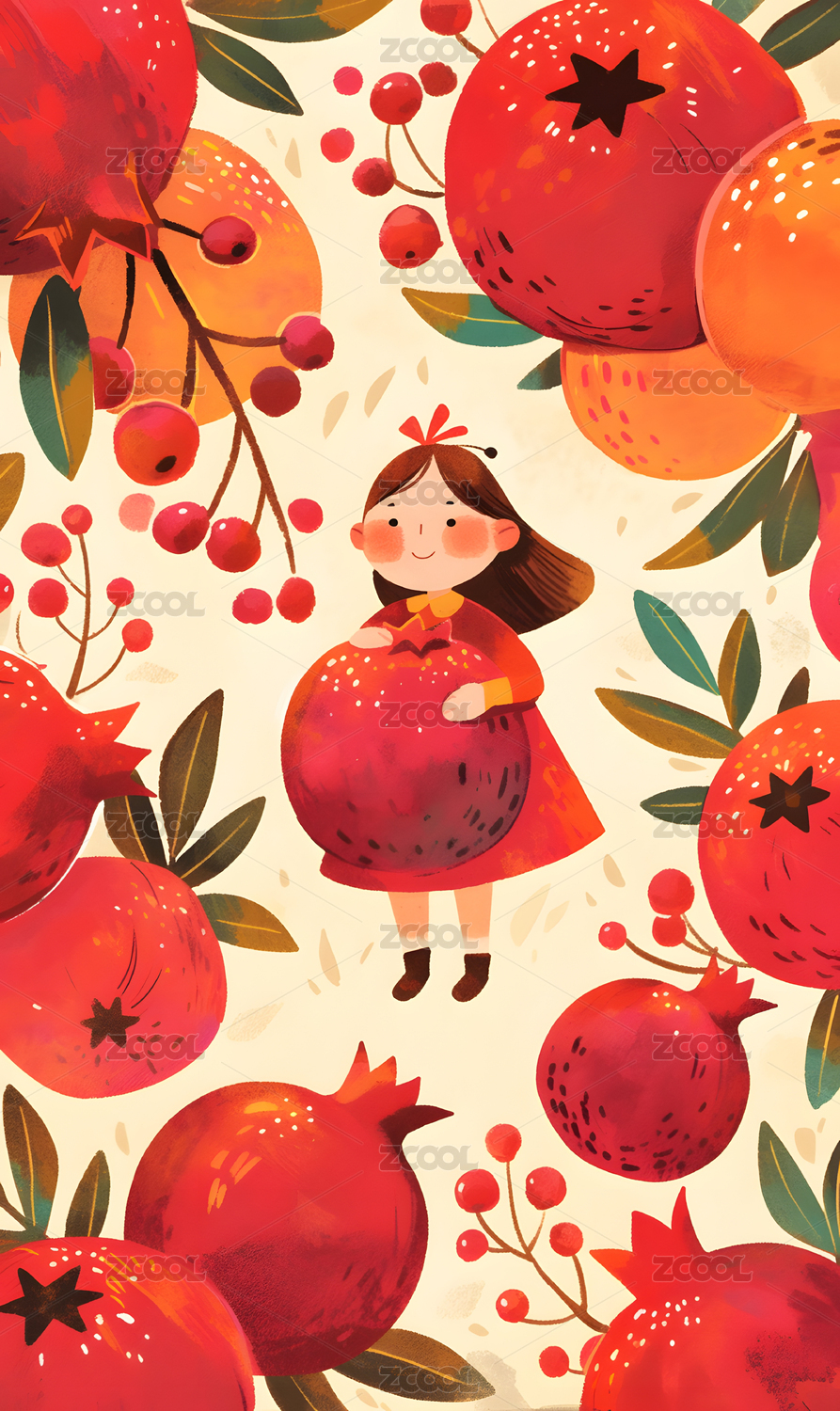 小孩,小朋友,水果,石榴籽,石榴,插画,卡通