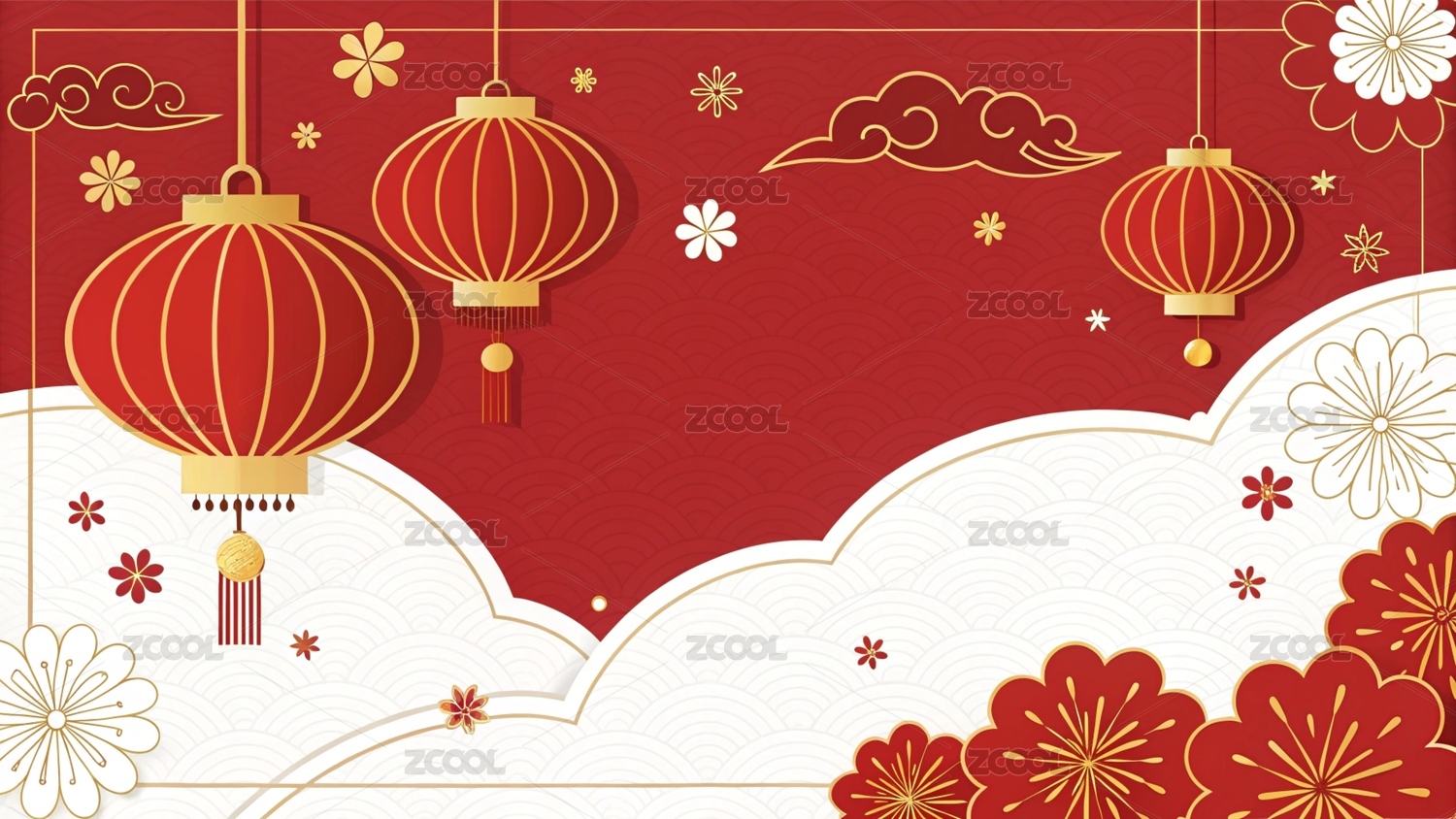 中式灯笼祥云新年背景展示图