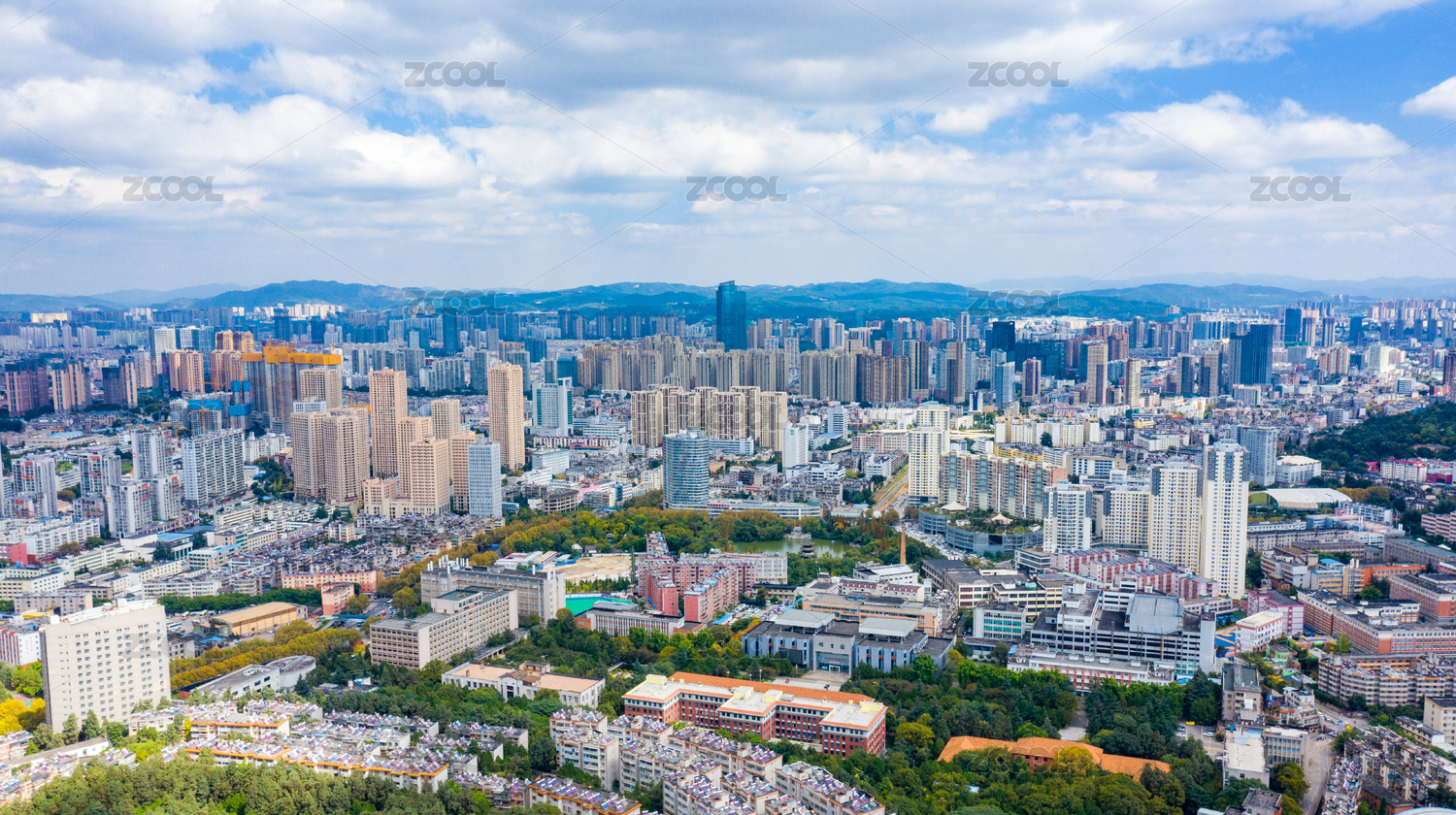 航拍云南昆明盘龙区城市天际线市区高楼大厦