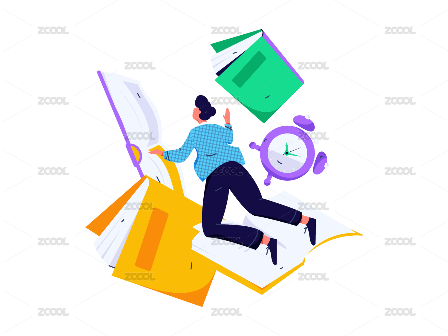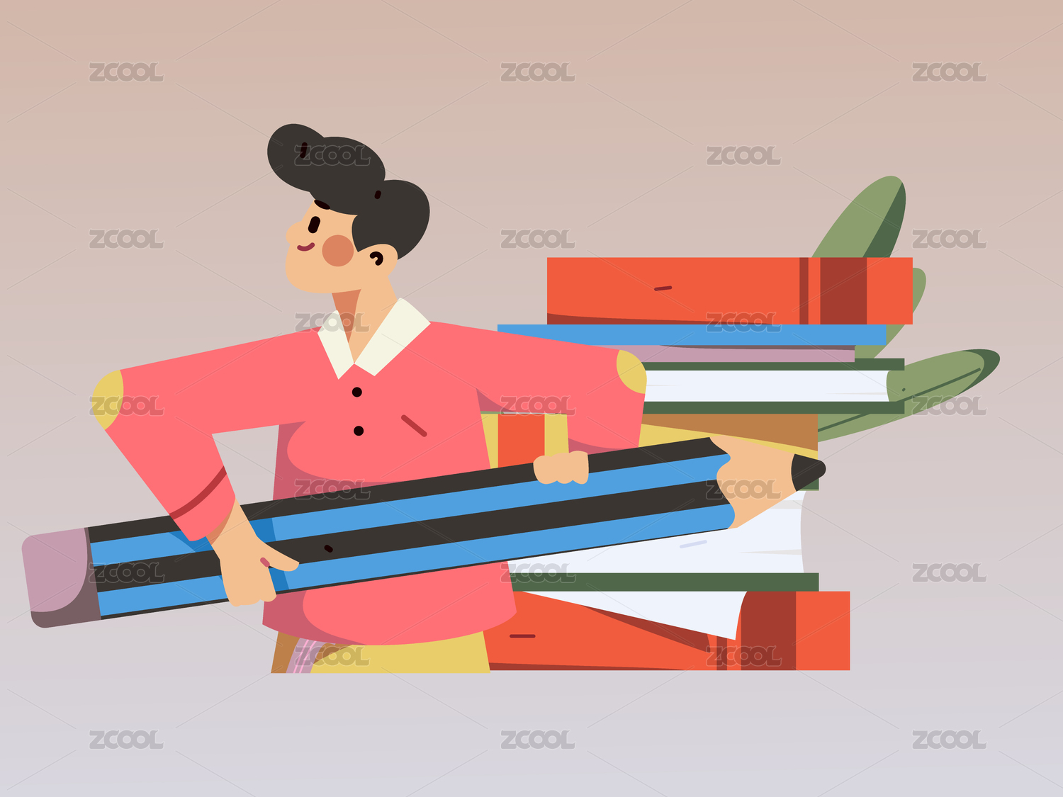 人物站书本上学习矢量插画