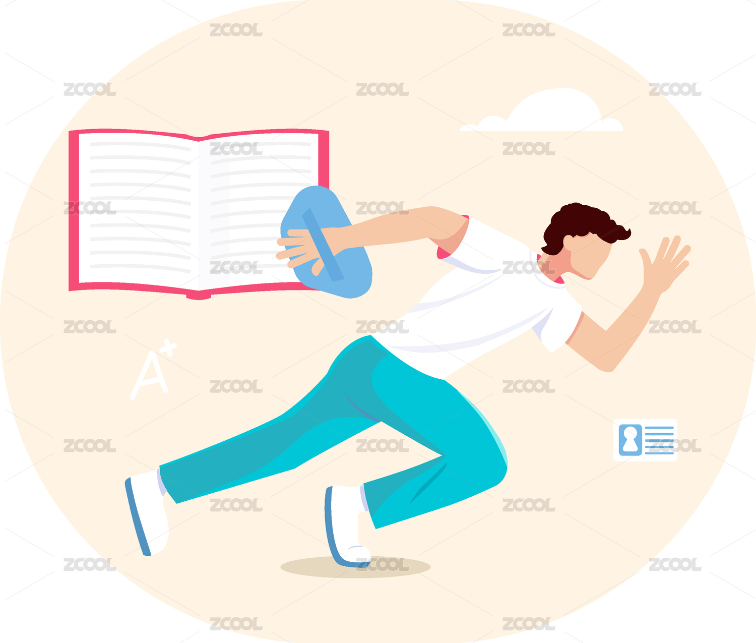 卡通学生背书包奔跑欢呼插画