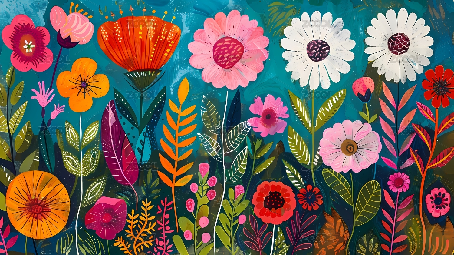 色彩缤纷花朵充满活力花卉艺术品