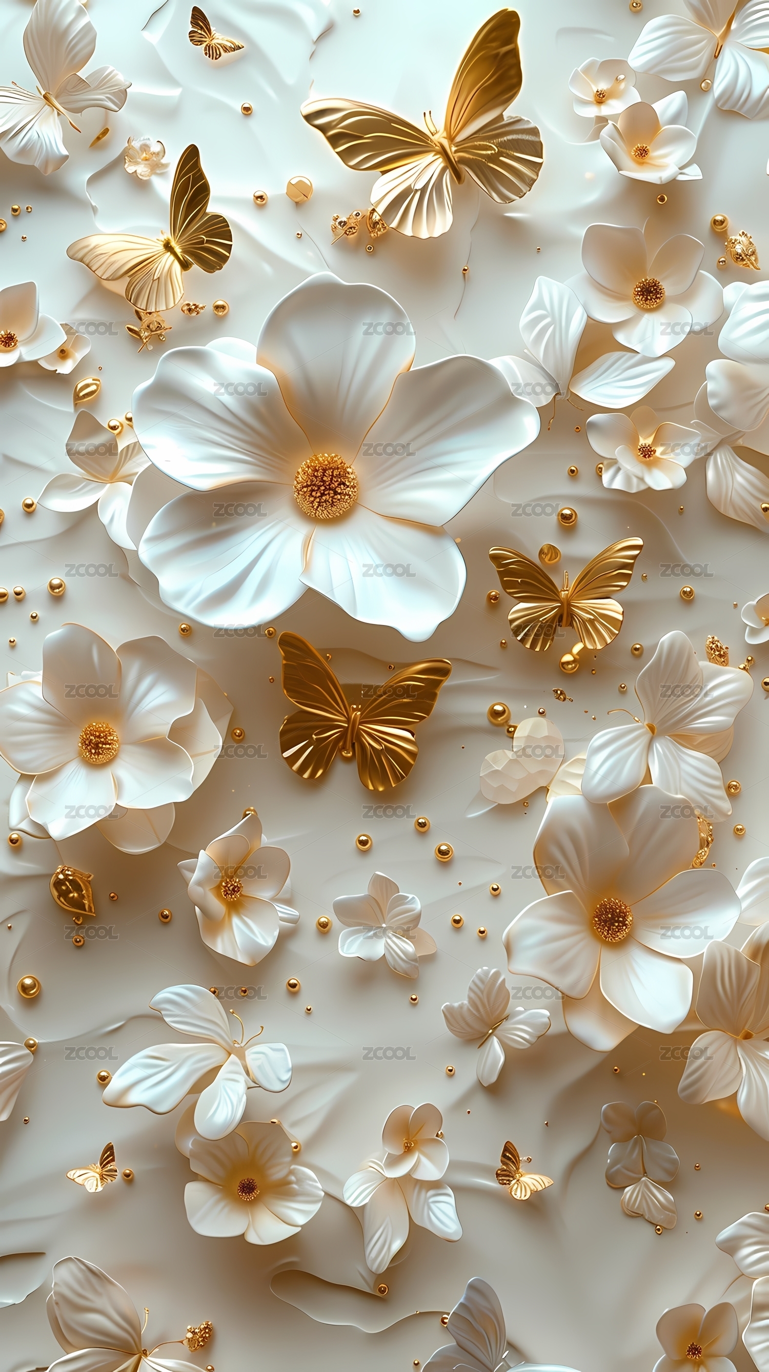 白金色花朵蝴蝶海报背景