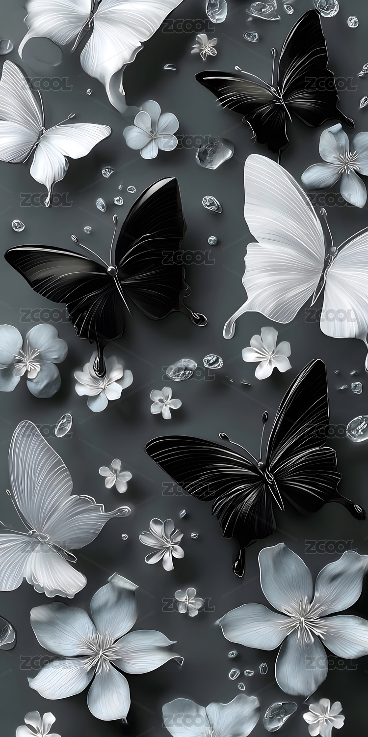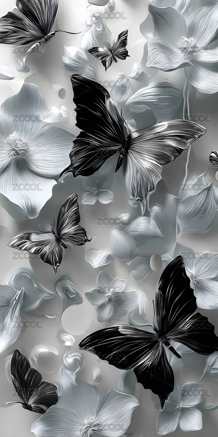 黑白蝴蝶花卉艺术设计
