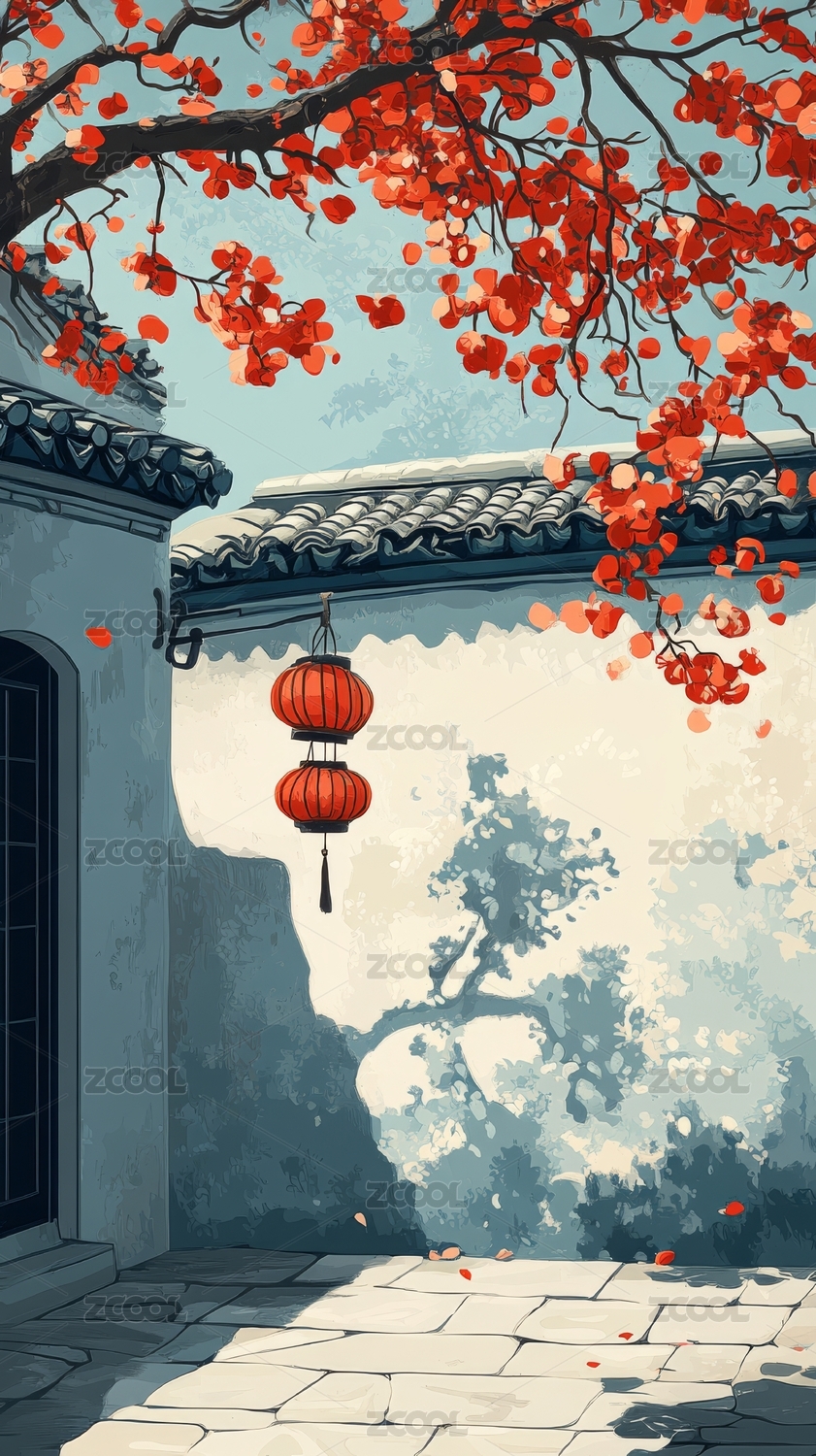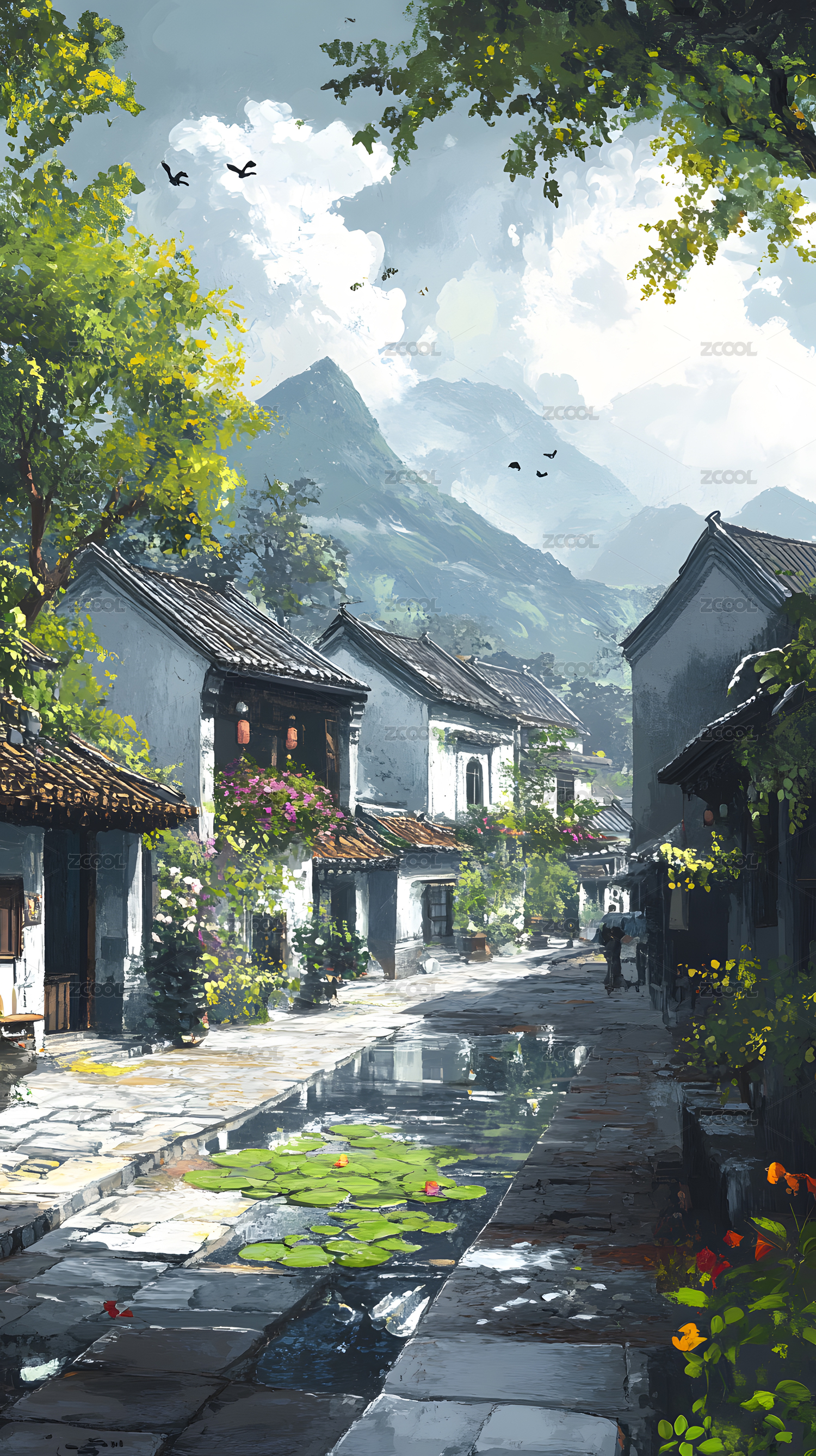 DXCZ202402,中国风,乡村,风景,插画,背景