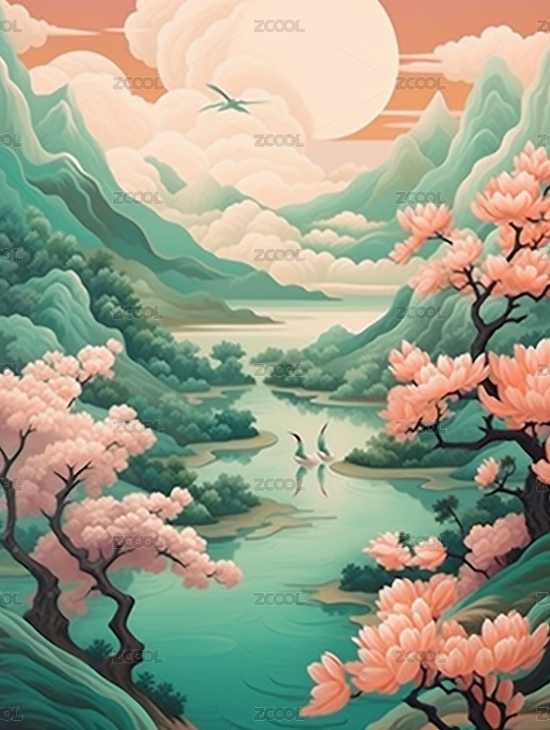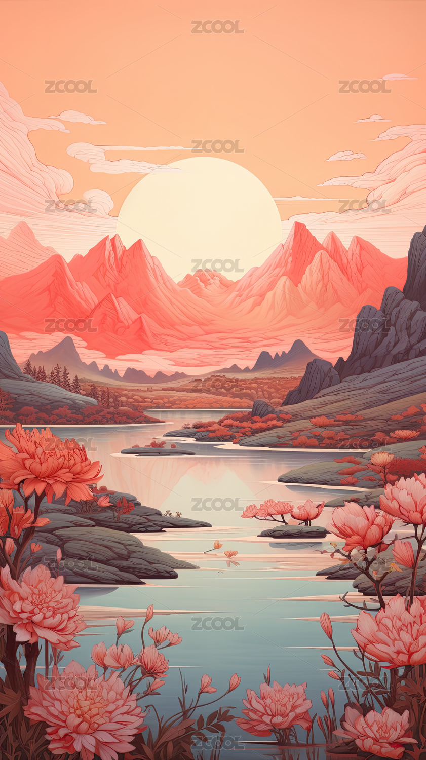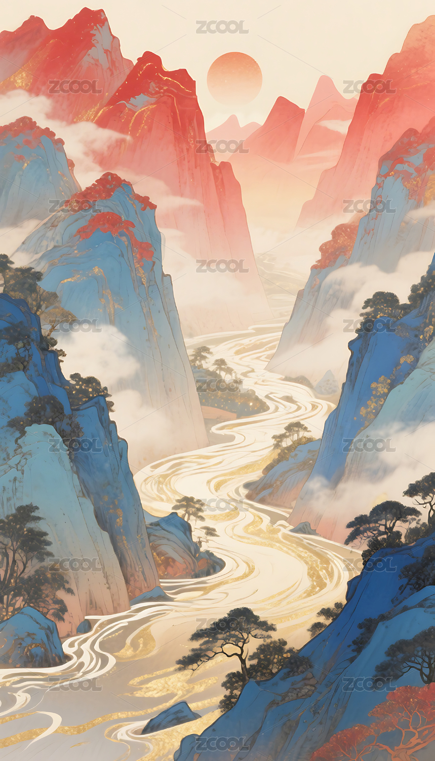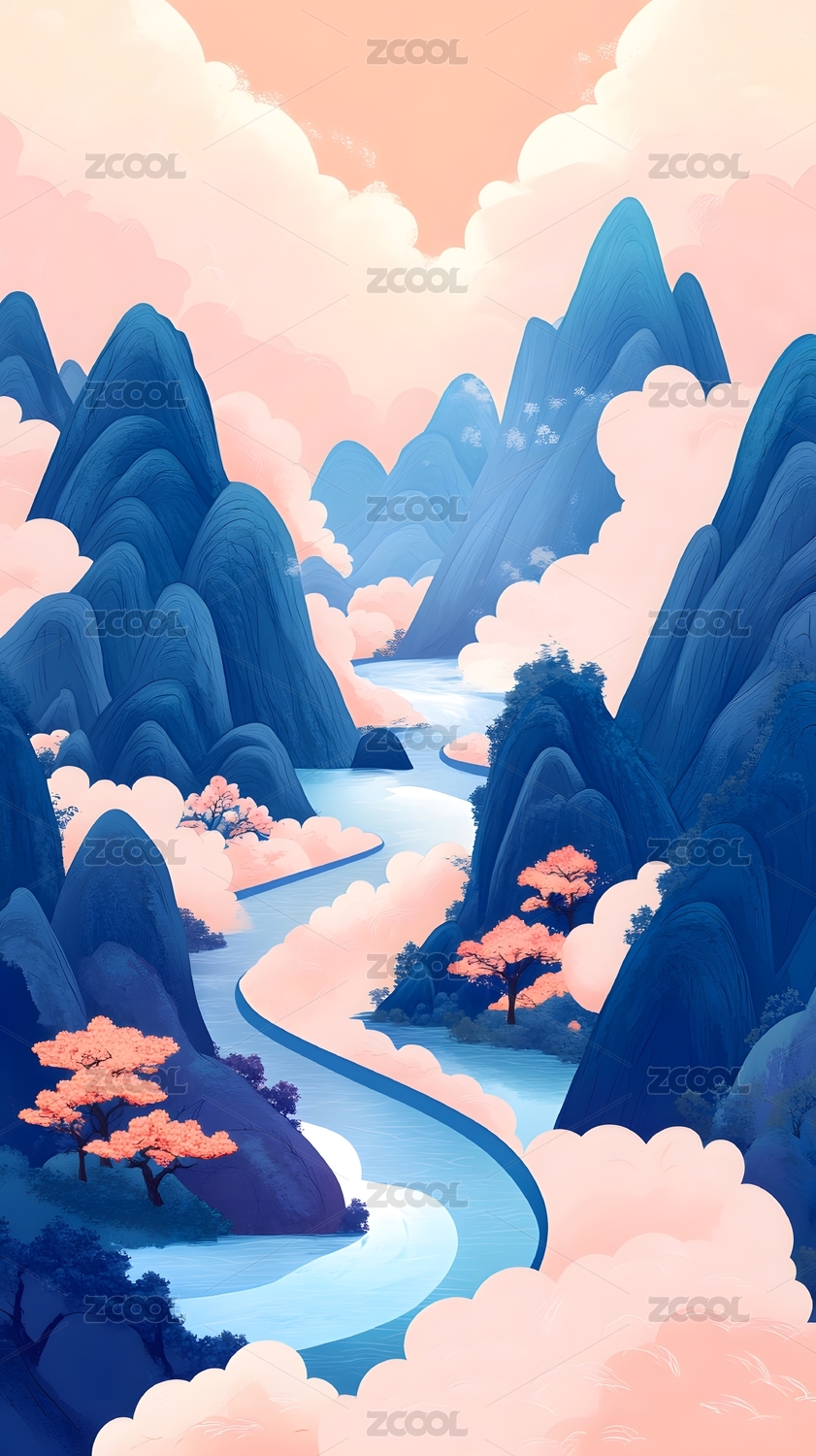 艺术品,多彩,设计,风景,山峦,山,水彩,插画,装饰画,装饰