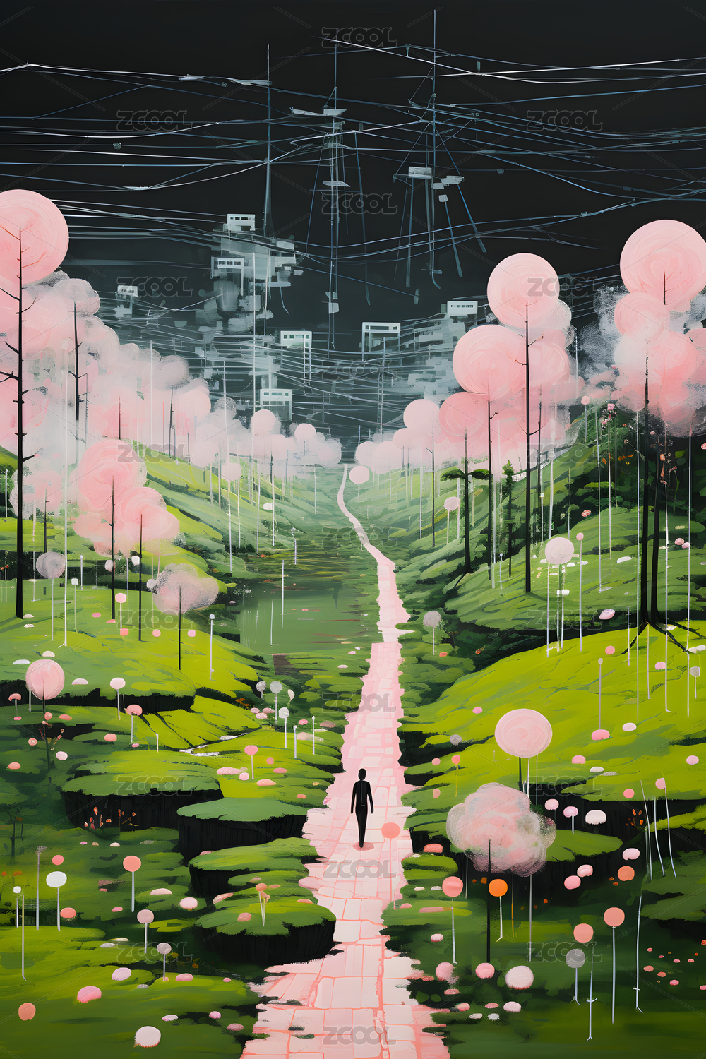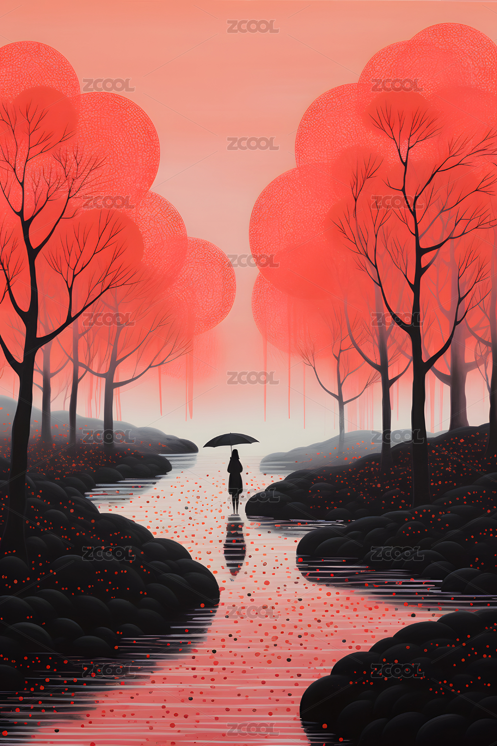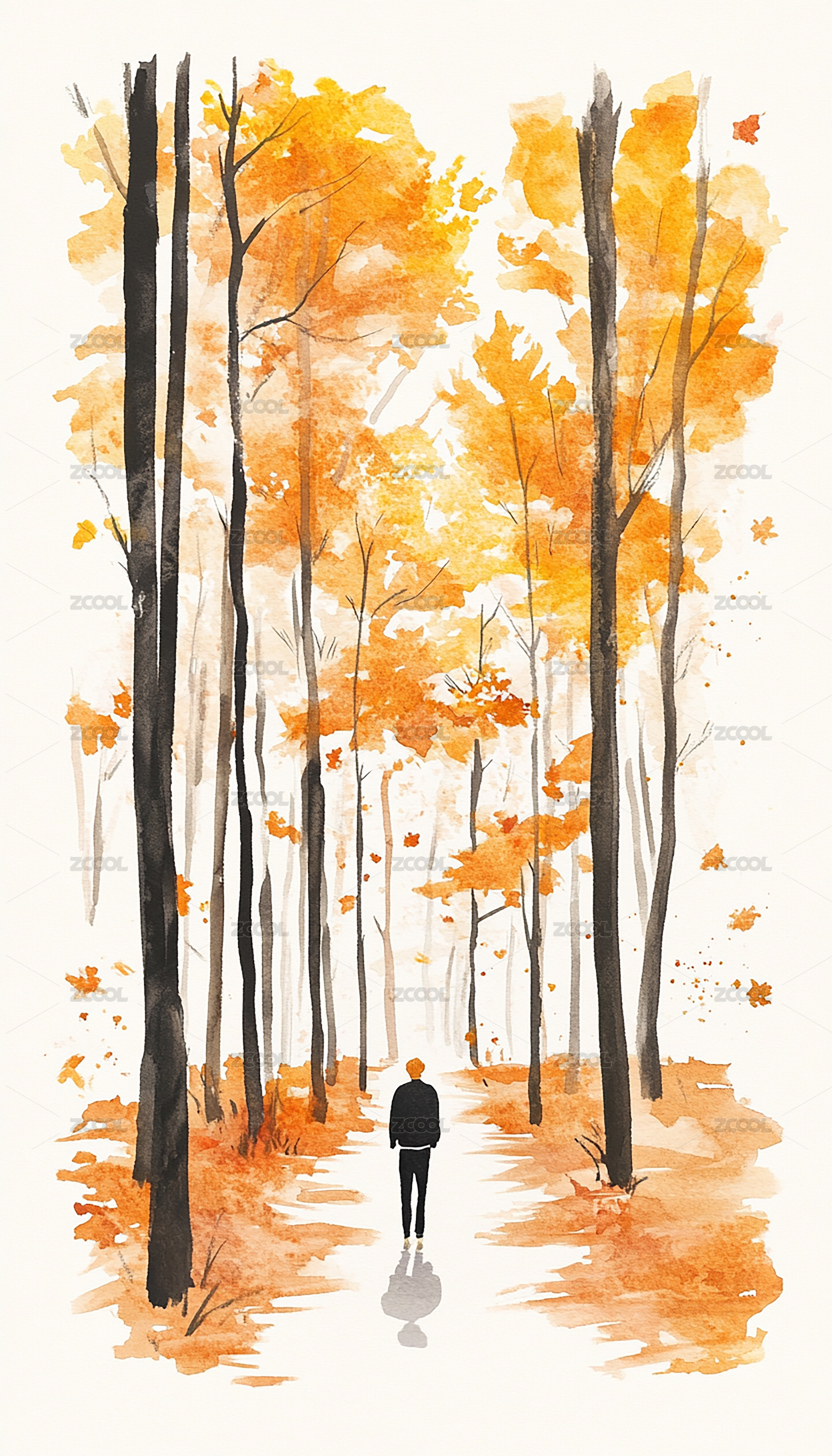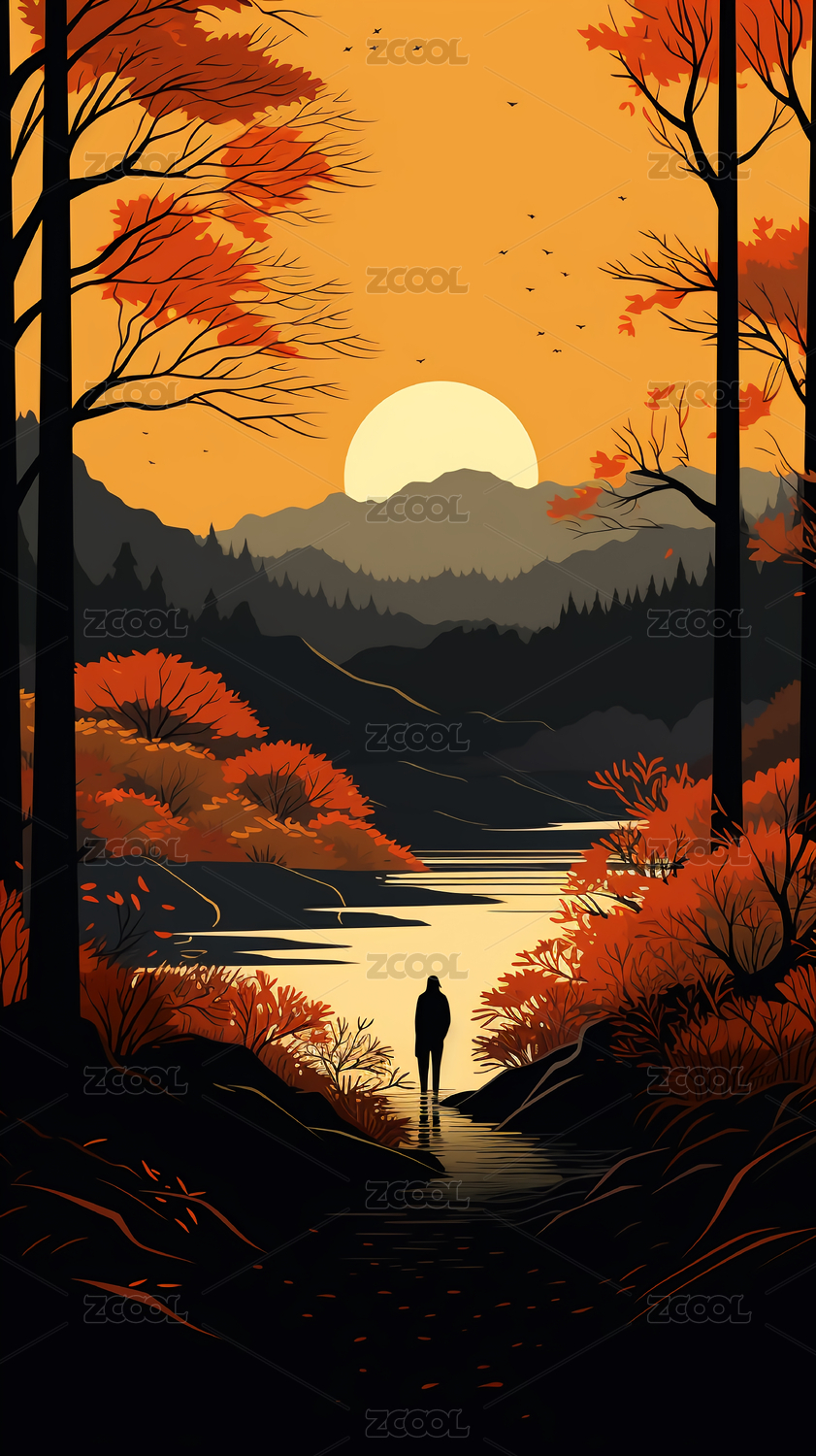 秋天,公园,城市,森林,场景,风景,树,户外,插画,植物