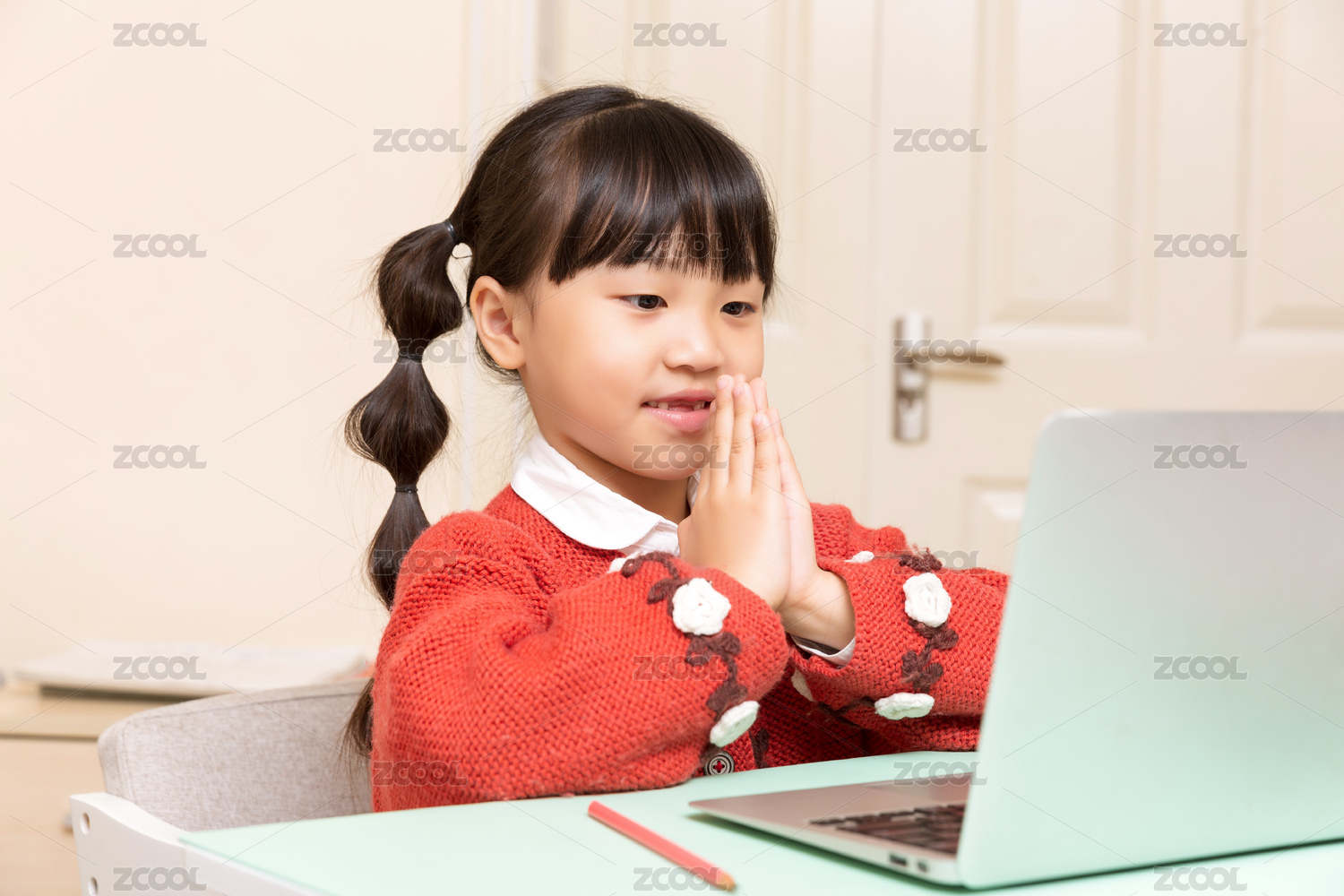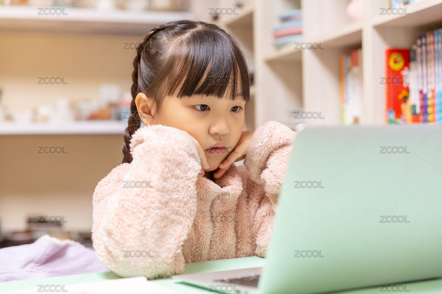 儿童,小学生,小女孩,可爱,在线,教育,网课,网络,电脑,室内