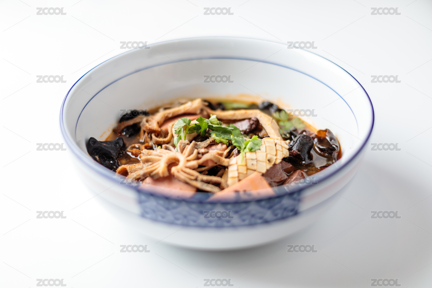 中国美食家常鱼汤,一大碗黄骨鱼豆腐汤在白背景上