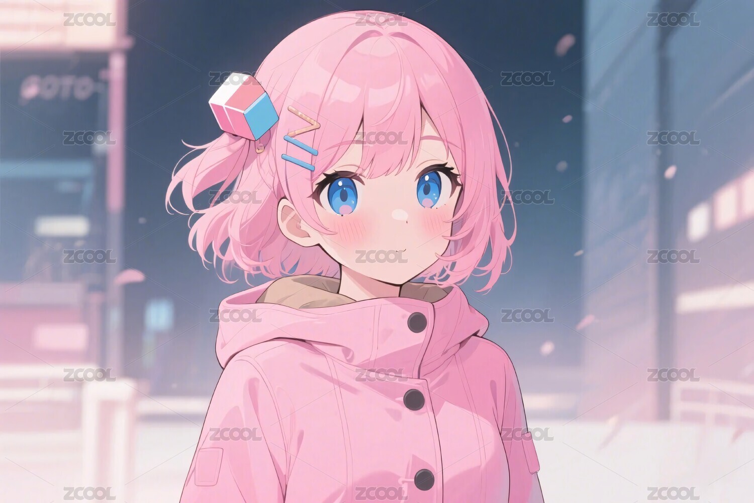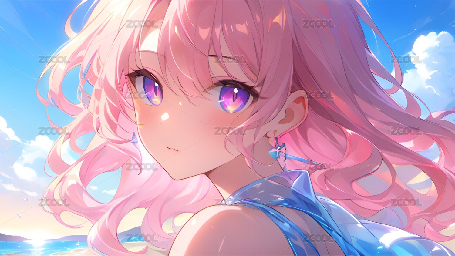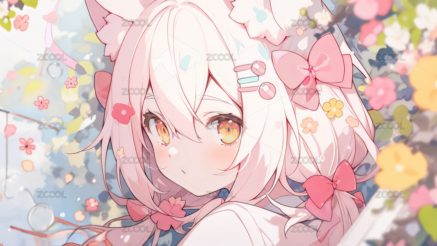 可爱的动漫女孩缤纷的色彩壁纸背景