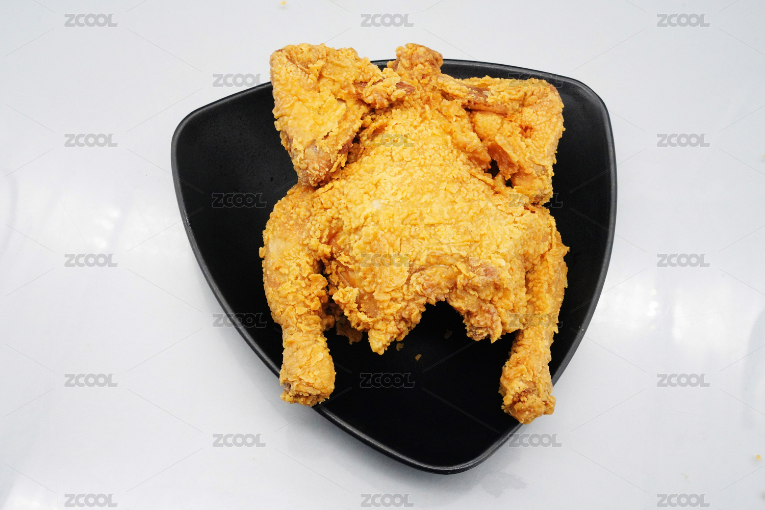 三角黑盘里的餐饮美食炸鸡